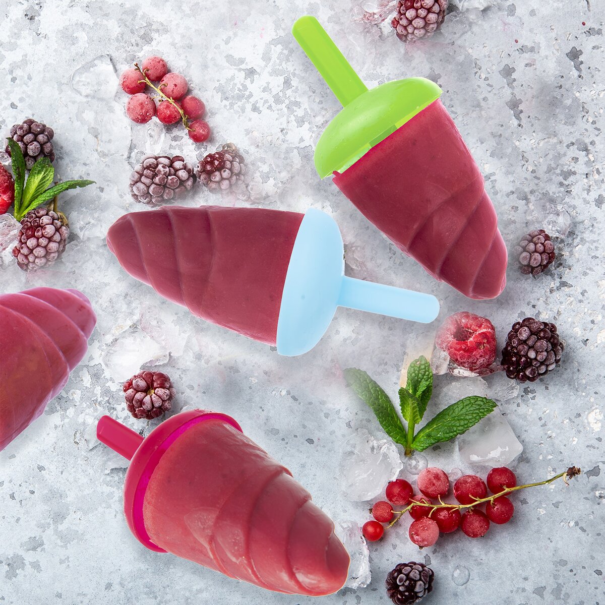 Či už milujete rozmixované ovocie, zmrazené domáce ovocné šťavy, alebo experimentujete s viacfarebnými smotanovými nanukmi, stačí zmes naliať do formy, vložiť viečko s hrotom a nechať zamraziť.