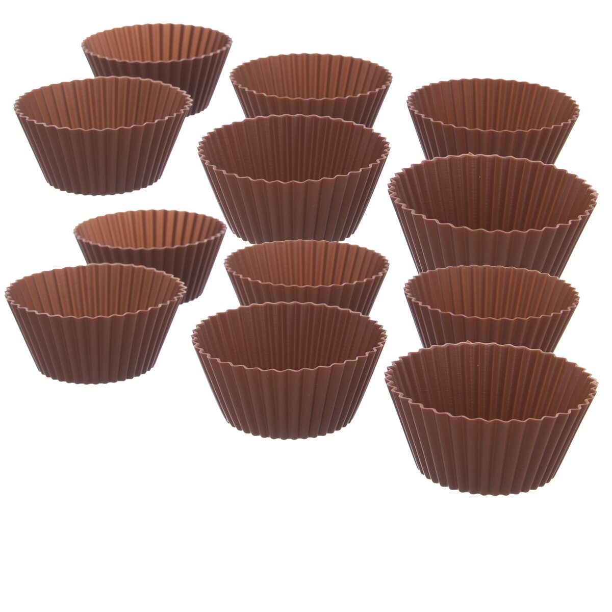 Vďaka kvalitným a praktickým hnedým silikónovým formám bude pečenie ľahšie. Možno ich použiť aj na prípravu ovocných košíčkov, suflé alebo osviežujúceho sorbetu. Formy sú vyrobené z odolného, žiaruvzdorného silikónu, určeného pre styk s potravinami. Priemer dna je 3,7 cm.