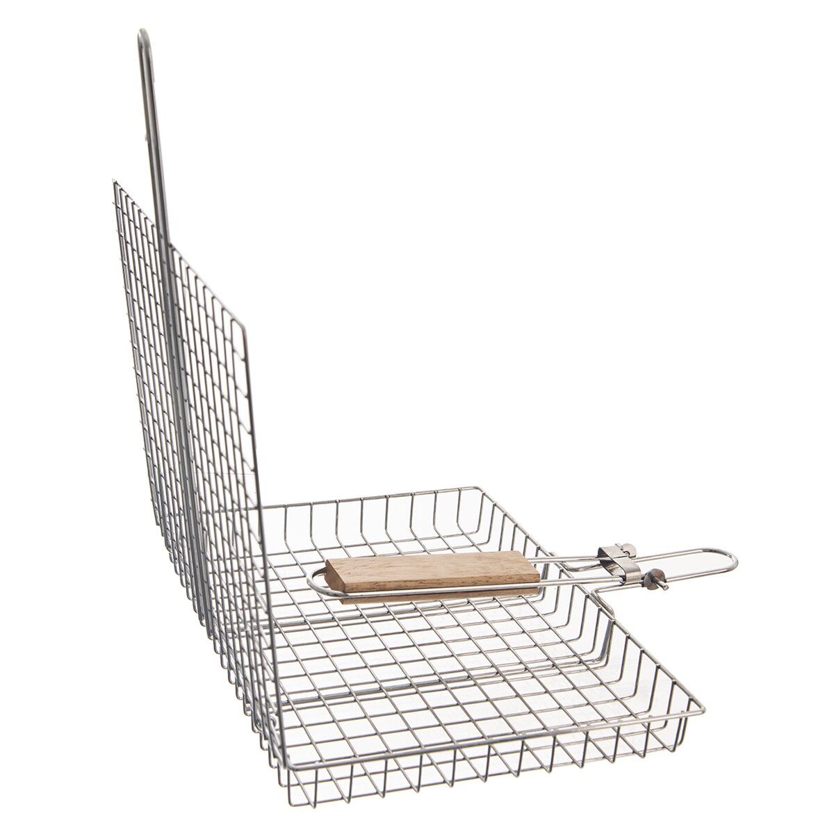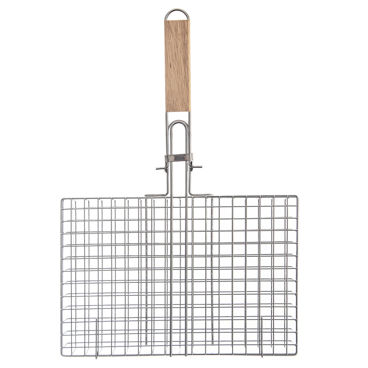 Kód produktu 111186Kovová pochrómovaná mriežka na grilovanie rýb, mäsa i zeleniny uľahčí otáčanie a rovnomerné grilovanie z oboch strán. Dostatočne dlhá, sklopná rukoväť s držadlom z gumovníkového dreva zabráni popáleniu rúk od žiaru.