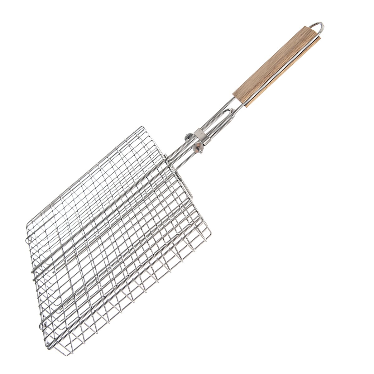Uľahčí otočenie a rovnomerné grilovanie z oboch strán. Stačí ju roztvoriť, vložiť naložené dobroty a uzavrieť, na to slúži posuvné očko na rukoväti, ktoré zaistí pevné priklopenie oboch častí. Dlhá skladacia rukoväť doplnená držadlom z gumovníkového dreva zabráni popáleniu rúk od žiaru.