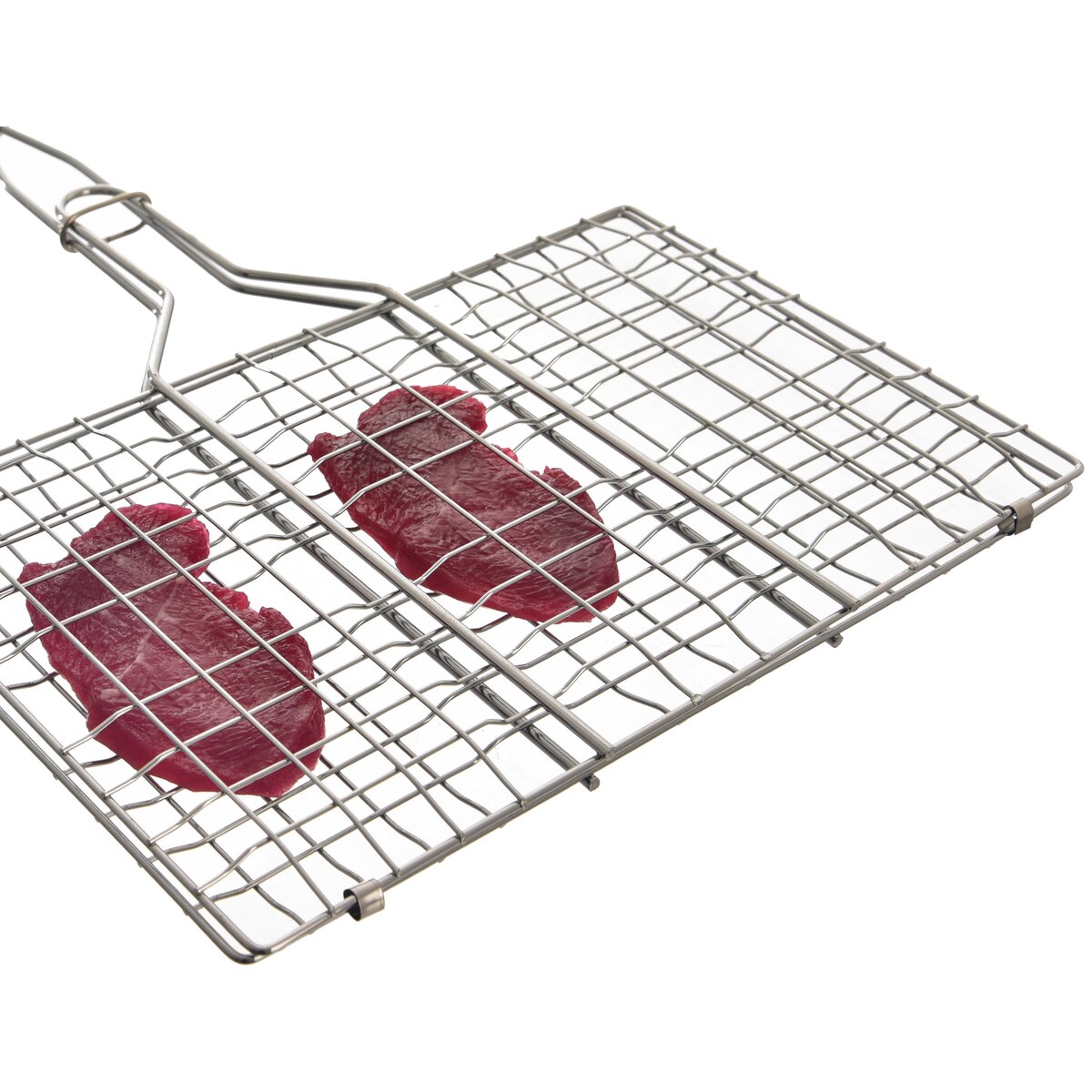 Mriežku stačí roztvoriť, vložiť mäso a uzavrieť. Na to slúži posuvné očko na rukoväti, ktoré zaistí pevné priklopenie oboch častí. Dlhá rukoväť, doplnená držadlom z gumovníkového dreva, zabráni popáleniu rúk od žiaru.