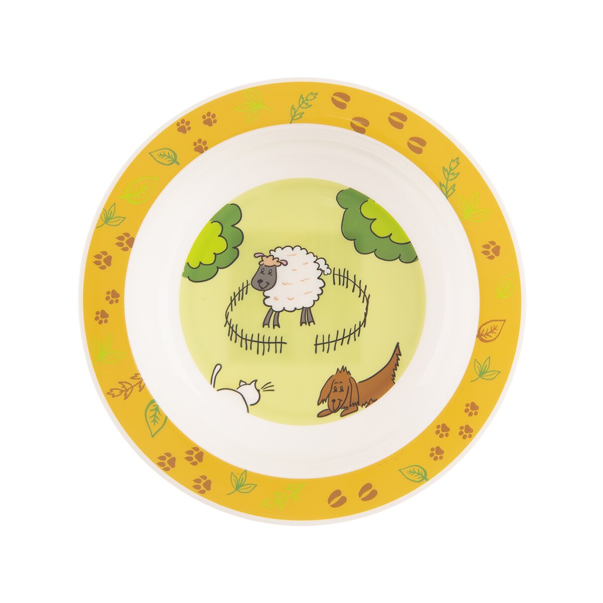 Cereálie s mliekom, zeleninový šalát aj obľúbenú polievku môžete deťom servírovať v hlbokom tanieriku s roztomilým motívom na tému farma. Vydajte sa na dobrodružstvo so zvieratkami a rozprávate sa s vašim malým nezbedníkom pri raňajkách či obeda o tom, kto žije na statku. Môžete si k tomu zaspievať aj známu pesničku "Starý farmár farmu mal...".