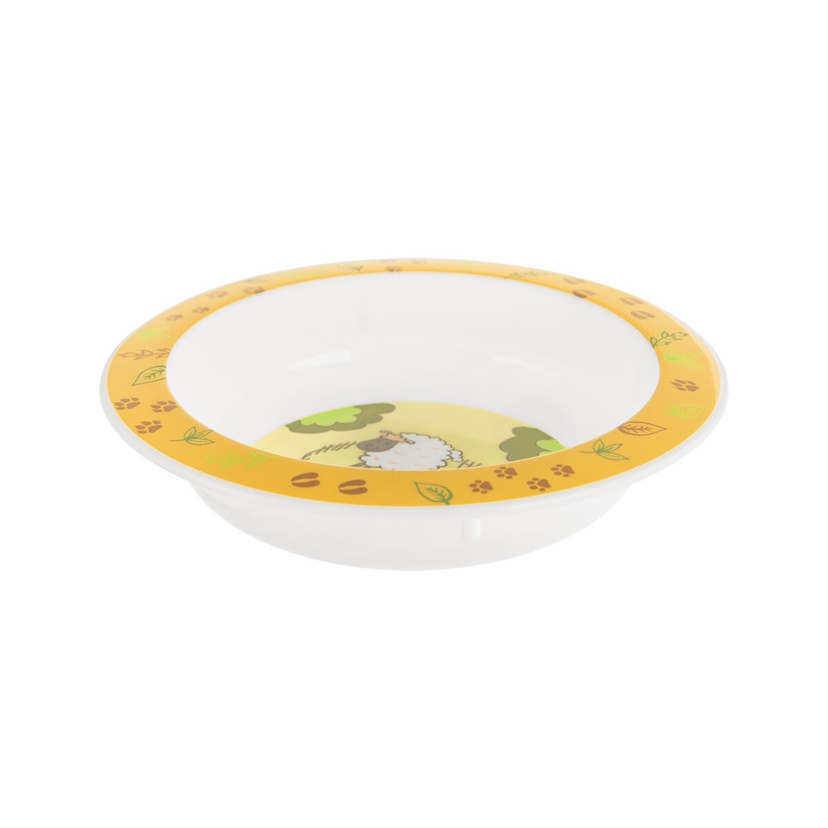 Detský riad z plastu PP je ľahký a odolný. Originálny dekor s ovečkou a ďalšími kamarátmi vznikol v dielni Orion dizajnérov.