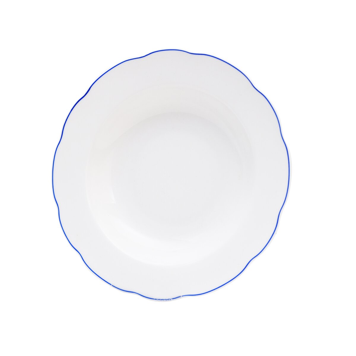 Tanier hlboký so zdobeným okrajom - modrá linka. Materiál: porcelán. Rozmery: pr. 21 cm.