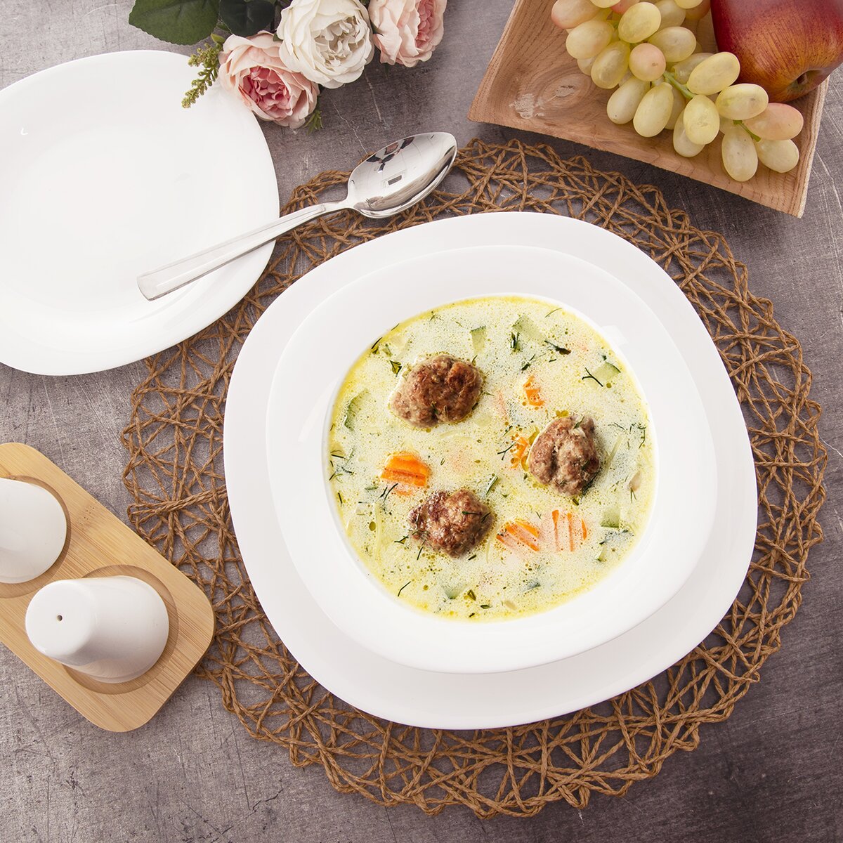 Efektný foodstyling vynikne aj vďaka hranatému, zaoblenému tvaru taniera, je možné ho kombinovať s ďalšími typmi tanierov z kolekcie LUNA.