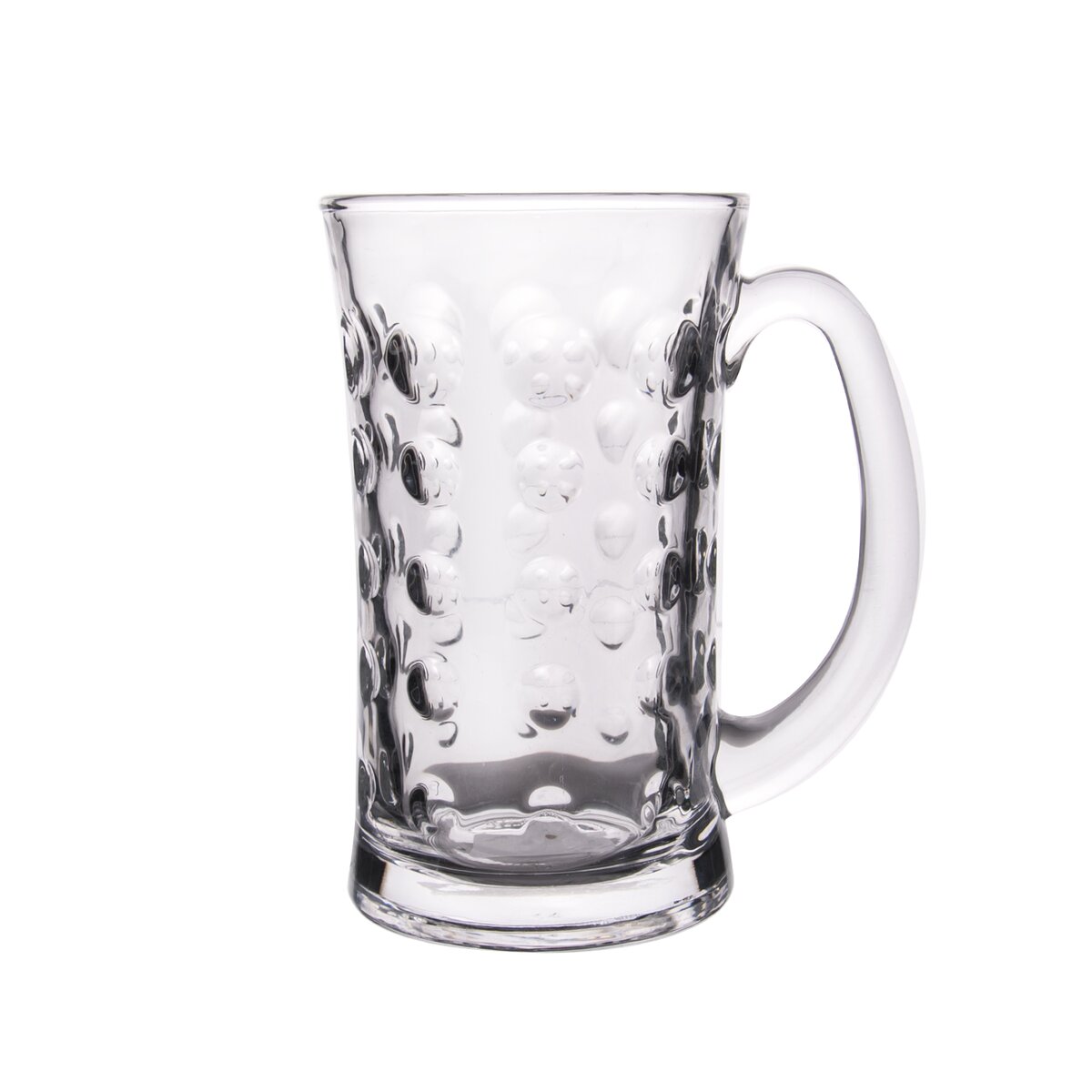 Hrnček s uchom. Materiál: sklo. Rozmery: objem 0,4 l, pr. 8 cm, v. 13,5 cm.