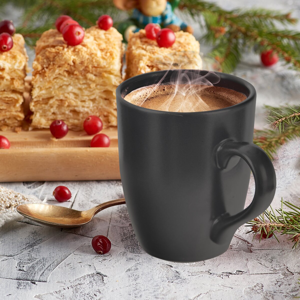 Hrnček v jednoduchom dizajne a elegantnej, modernej čiernej farbe. Vychutnajte si horúcu rannú kávu, mlieko alebo čaj, či už ste doma, na chalupe alebo v práci. Je možné ho použiť v mikrovlnnej rúre a umývať jednoducho v teplej vode so saponátom.