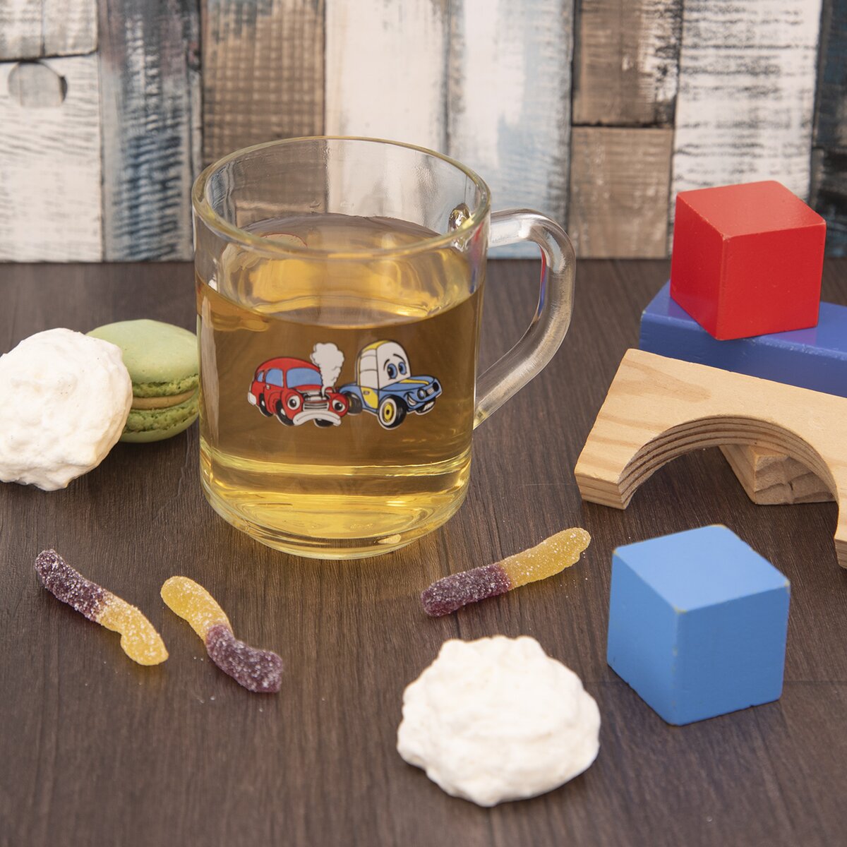 Kód produktu 129459Sklenený hrnček s objemom 0,27 l s dekorom autíčok.