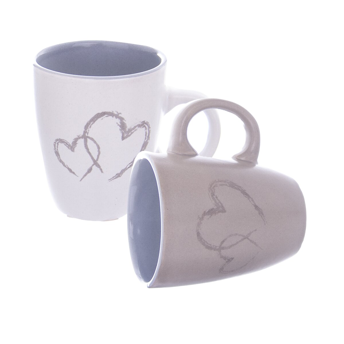 Ich dekor dvojitého srdca a neutrálne tóny farieb zaručia, že sa budú hodiť do každej kuchyne. Hrnčeky môžu do mikrovlnnej rúry aj umývačky riadu.