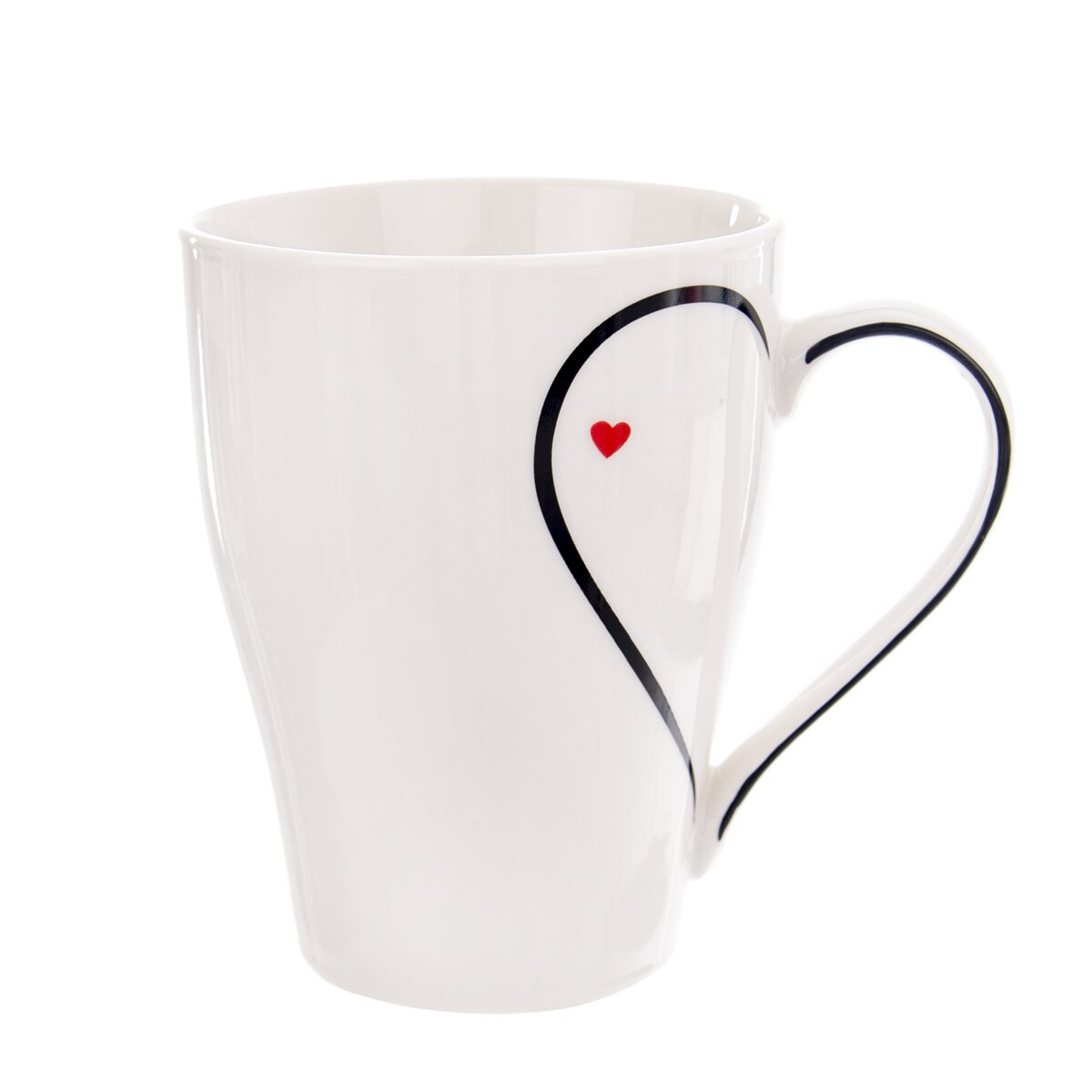 Kód produktu 128805Biely porcelánový hrnček s objemom 0,38 l so zaujímavo riešeným dekorom srdiečok.
