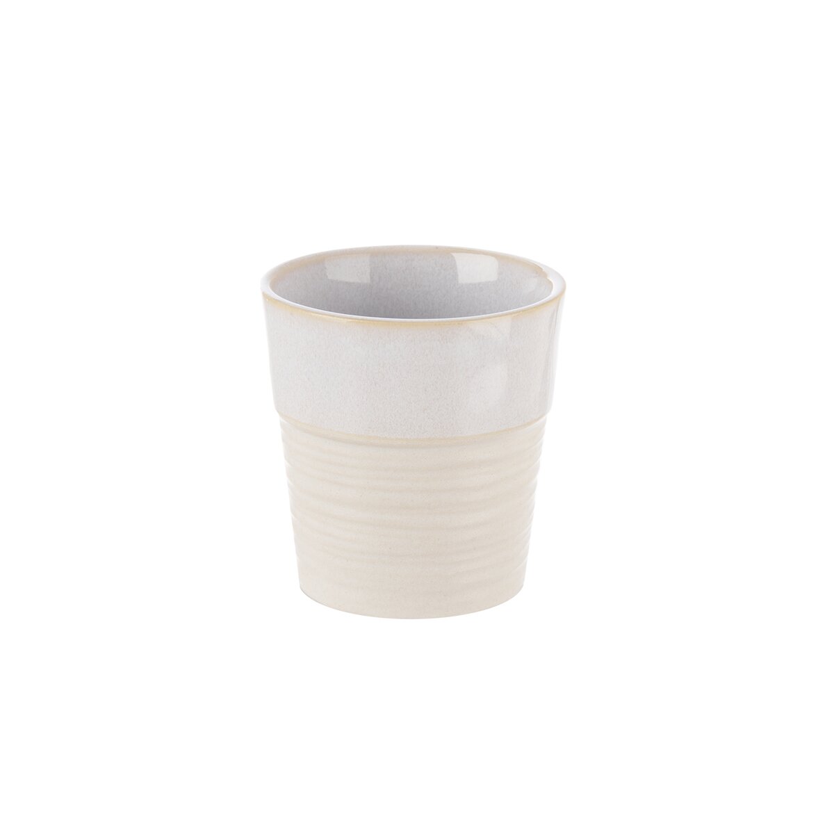Kód produktu 112442Bielo-béžový kameninový hrnček bez ucha je určený na podávanie espressa. Má objem 80 ml.