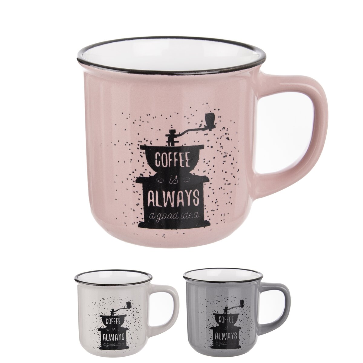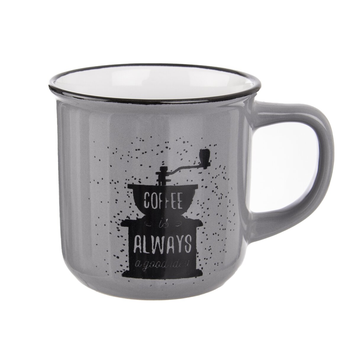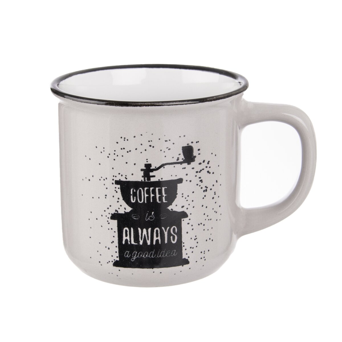 Či už uprednostňujete espresso, cappuccino alebo café latte, vychutnajte si váš obľúbený nápoj v tomto keramickom hrnčeku s objemom 370 ml. Dekor kávového mlynčeka a anglický nápis „Káva je vždy dobrý nápad“ sa hodí pre všetkých pravých milovníkov tohto horúceho nápoja.