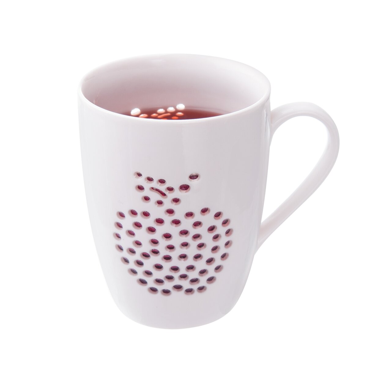 Hrnček so zaujímavým dekórom. Materiál: porcelán. Rozmery: objem 0,42 l, pr. 8,5 cm, v. 10,5 cm.