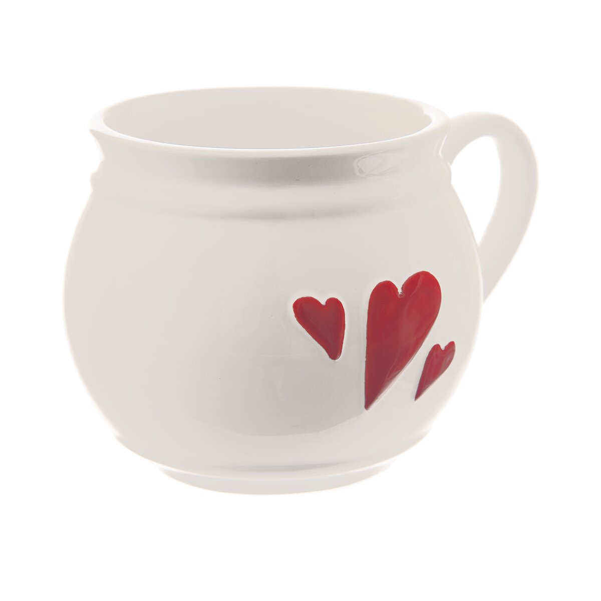 Kód produktu 129433Veľký glazovaný hrnček SRDIEČKA so štýlovým plastickým motívom má objem 0,8 l.
