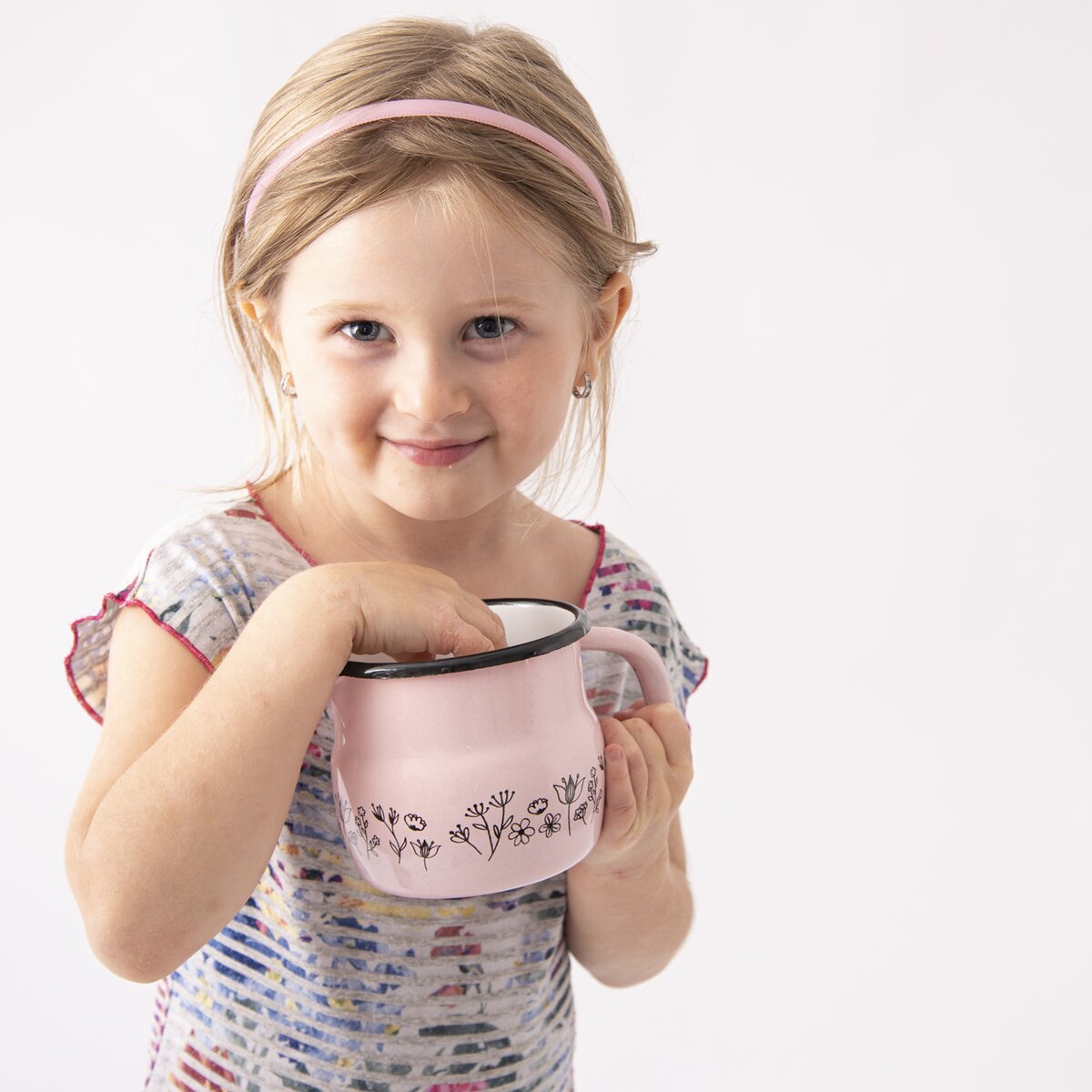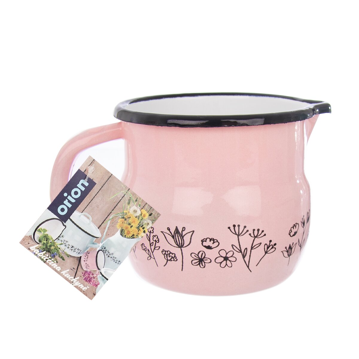 Zdobí ho pastelovo ružová farba a jemný dekor kvetín, ktoré z neho robia krásny kúsok nielen chatu či chalupu, ale aj do modernej domácnosti. Má priemer 10 cm a objem 800 ml.