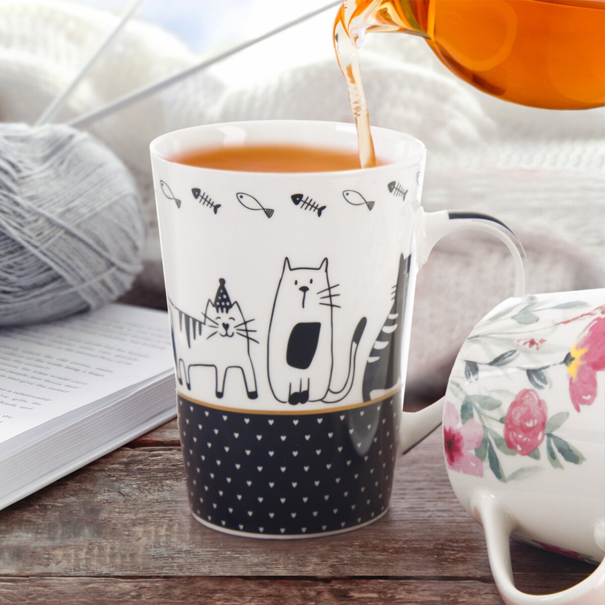 Kód produktu 129435Porcelánový hrnček s roztomilou potlačou mačiek a psov, s objemom 550 ml, je vhodný na servírovanie teplých aj studených nápojov, možno ho použiť v mikrovlnnej rúre aj v umývačke.