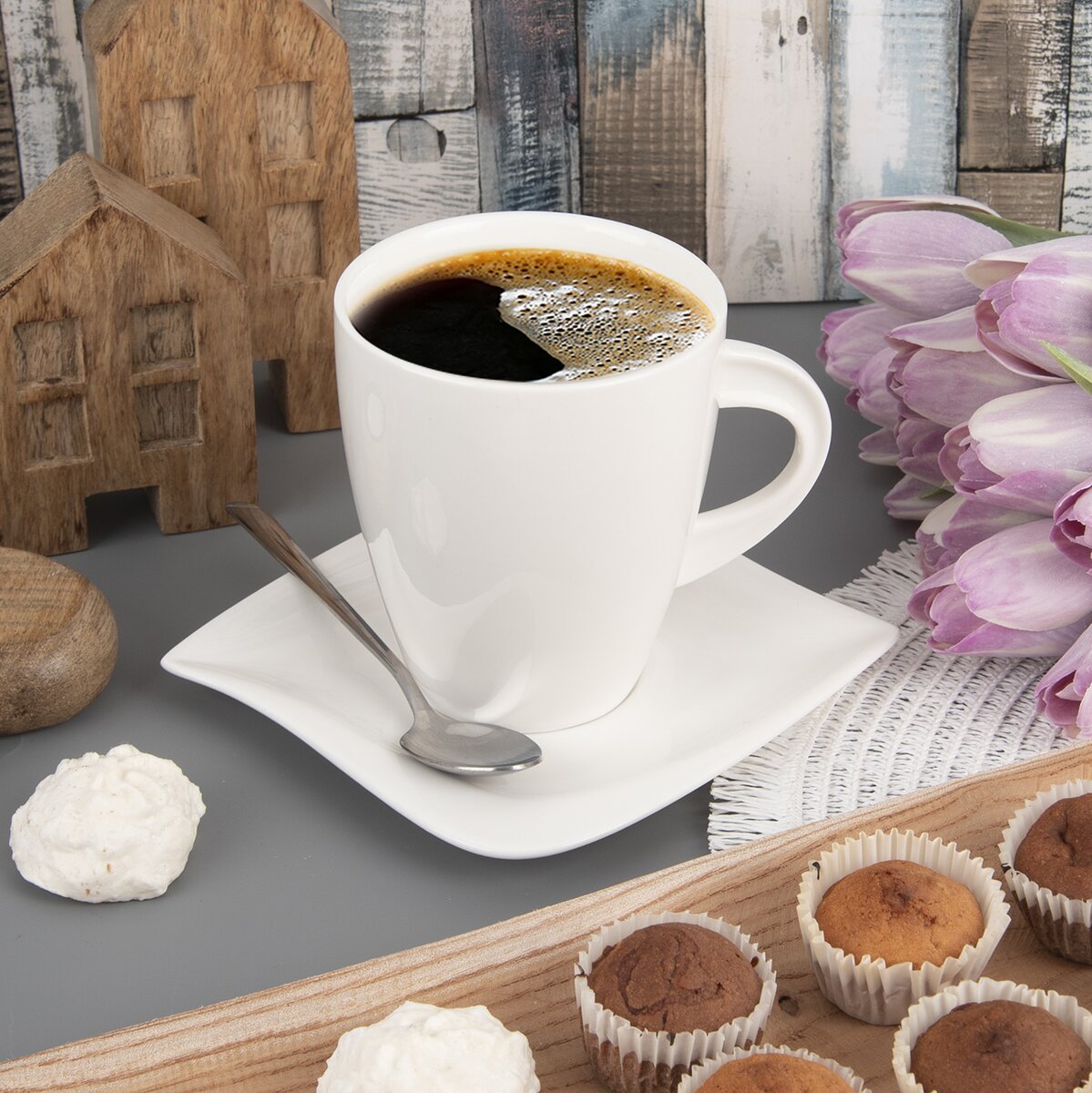 Voňavý bylinkový čaj, lahodné kakao, horúci punč alebo veľkú kávu s mliekom si vychutnáte z jednoduchého hrnčeka. Doma aj v reštauráciách či kaviarňach. Vyznačuje sa jednoduchou eleganciou a krásne doplní ďalší riad z kolekcie Mona.