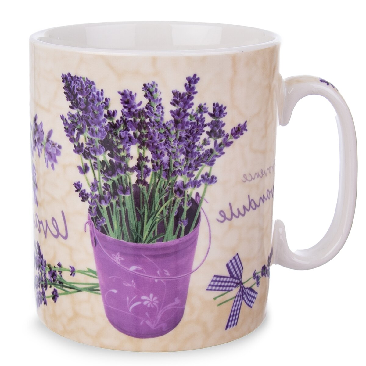 Kód produktu 125370Hrnček s uchom a dekórom levandule. Materiál: porcelán. Rozmery: objem 0,75 l, pr. 10,5 cm, v. 12 cm.