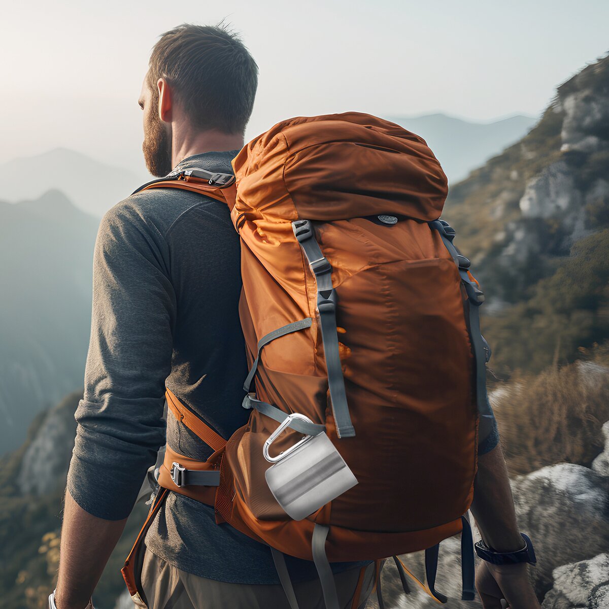 Netradičný vzhľad podčiarkuje držadlo v tvare karabíny (zložené z hliníka, nerezu a kovu), vďaka ktorému ho možno zavesiť za popruh batohu, tašky aj pútka nohavíc.