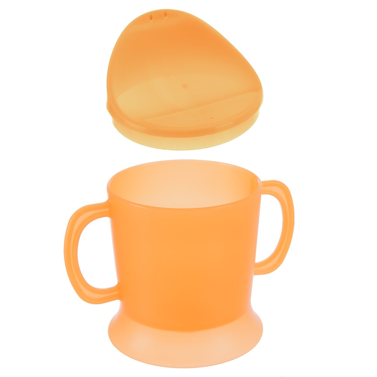 Kód produktu 112446Oranžový hrnček s objemom 230 ml s náustkom a dvoma držadlami po stranách.