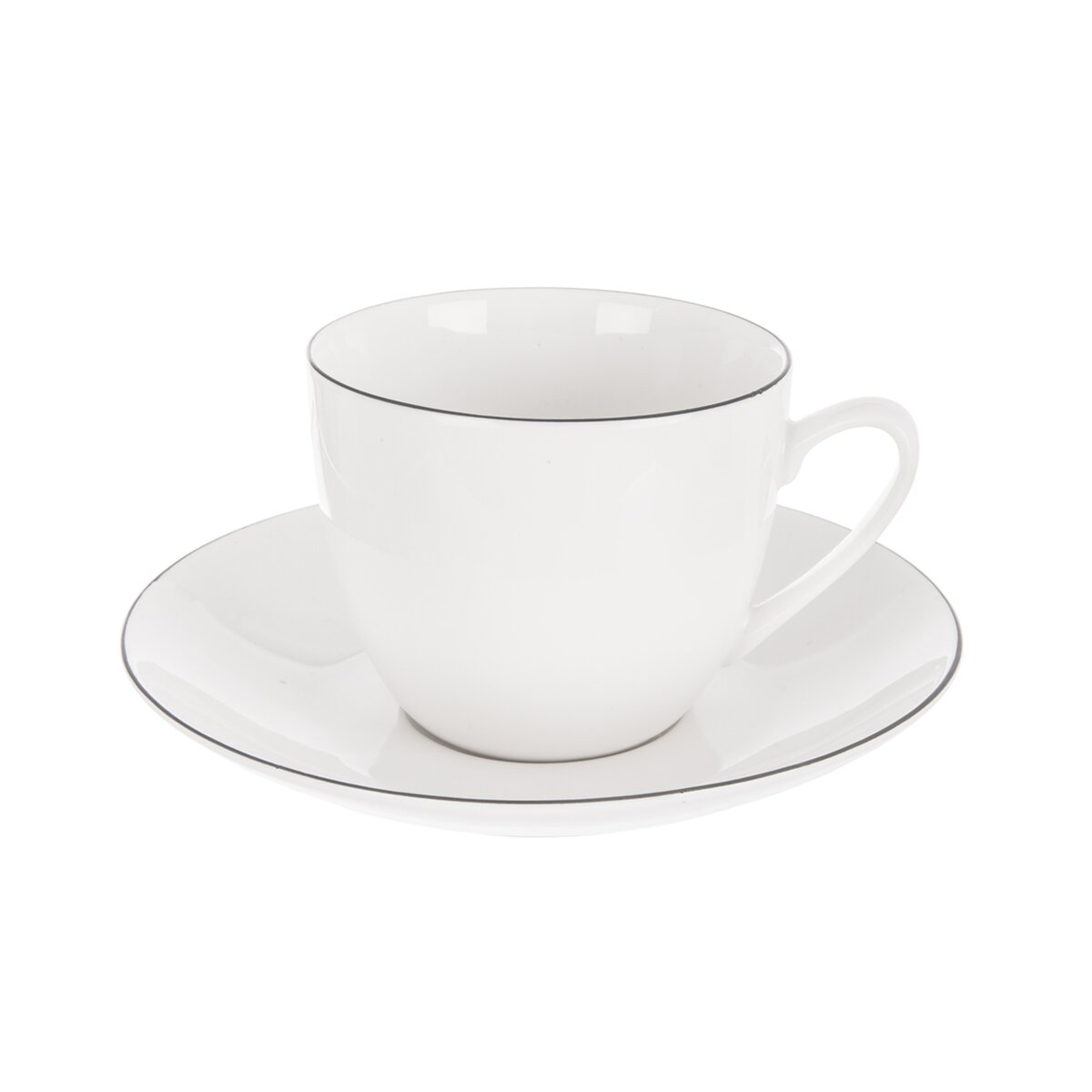 Elegantný porcelánový hrnček má hladký biely povrch a je zdobený jemnou čiernou linkou po okraji, ktorá podčiarkuje jeho vycibrený vzhľad. Spoločne s tanierikom priemeru 14,7 cm je ideálny na podávanie cappuccina, lunga alebo silnejšieho flat white. Priestranné ucho uľahčí popíjanie obľúbeného nápoja.