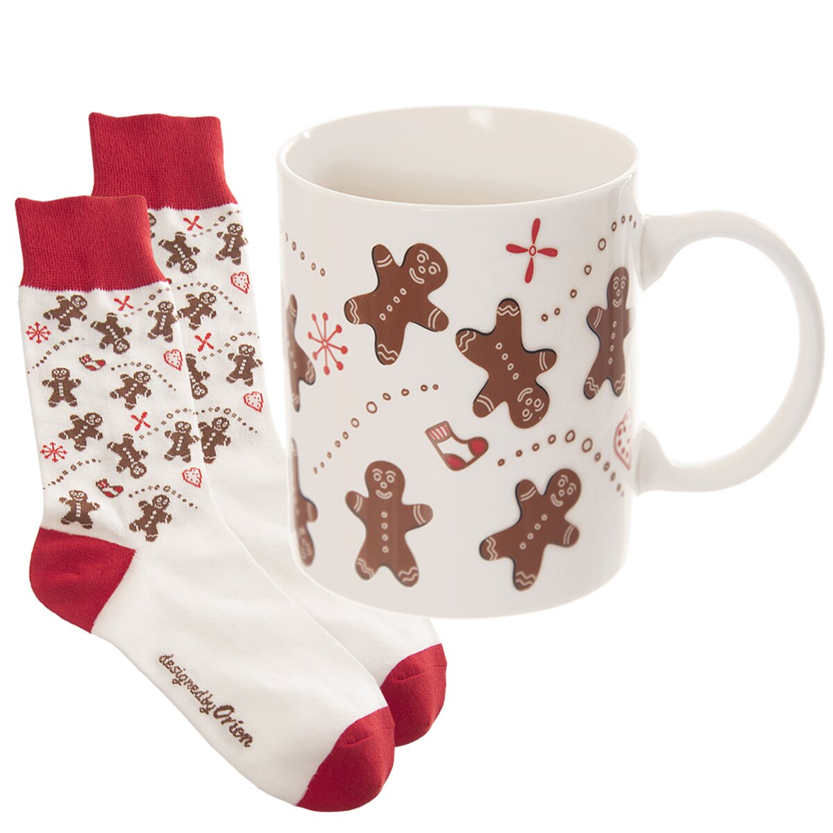 Kód produktu 129466Keramický hrnček s objemom 0,35 l v sade s veselými ponožkami veľkosti 38-40. Zdobí ich motív roztomilých perníčkov.