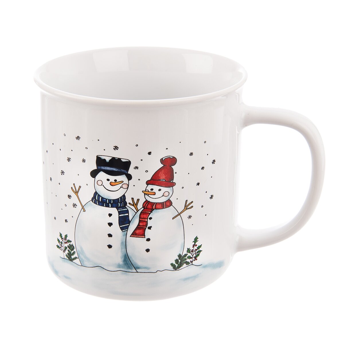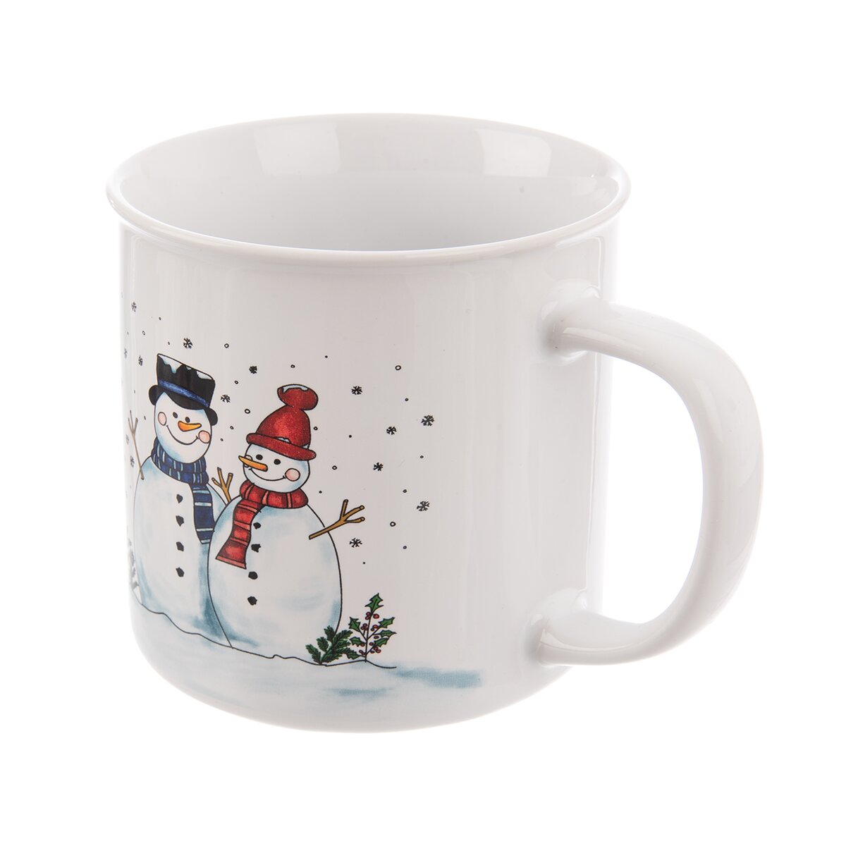 Kód produktu 129694Keramický biely hrnček s dekorom snehuliaka má objem 0,51 l a je určený na podávanie čaju, veľkej bielej kávy, kakaa, vareného vína a ďalších nápojov nielen v období Adventu.