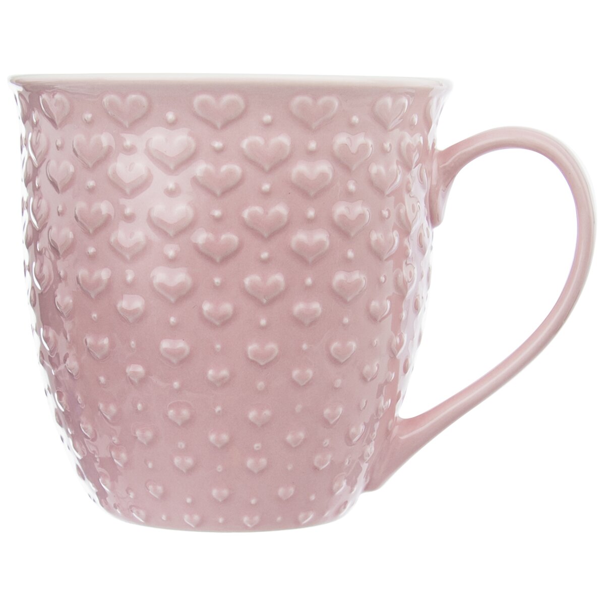 Kód produktu 128847Veľký ružový keramický hrnček objemom 0,58 l s krásnym plastickým reliéfom drobných sŕdc na povrchu.