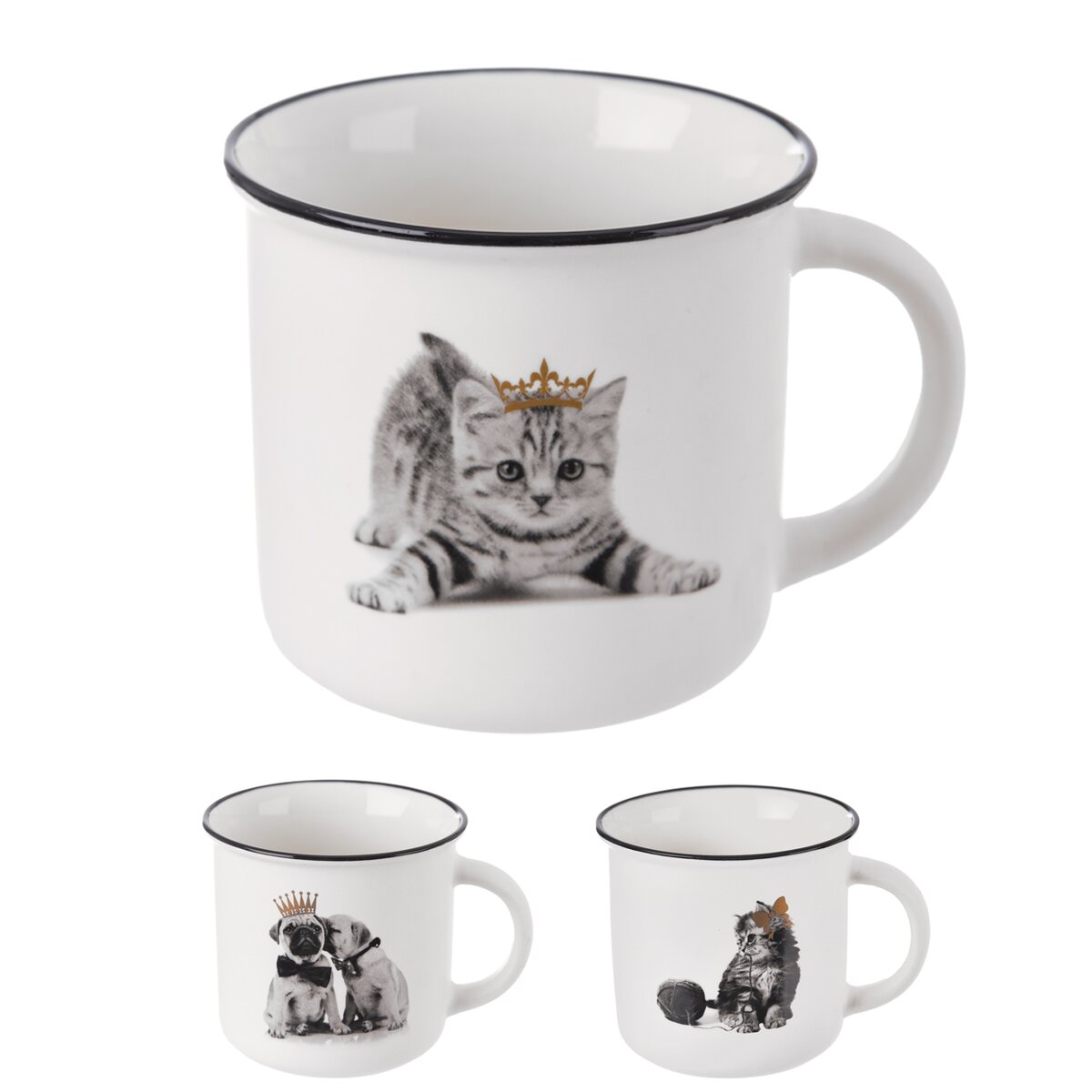 Tento porcelánový hrnček s objemom 420 ml je krásnym darčekom ako pre blízke osoby, tak aj pre vlastnú radosť. Je zdobený roztomilým dekorom zvierat v čiernobielej farbe so zlatými detailmi.