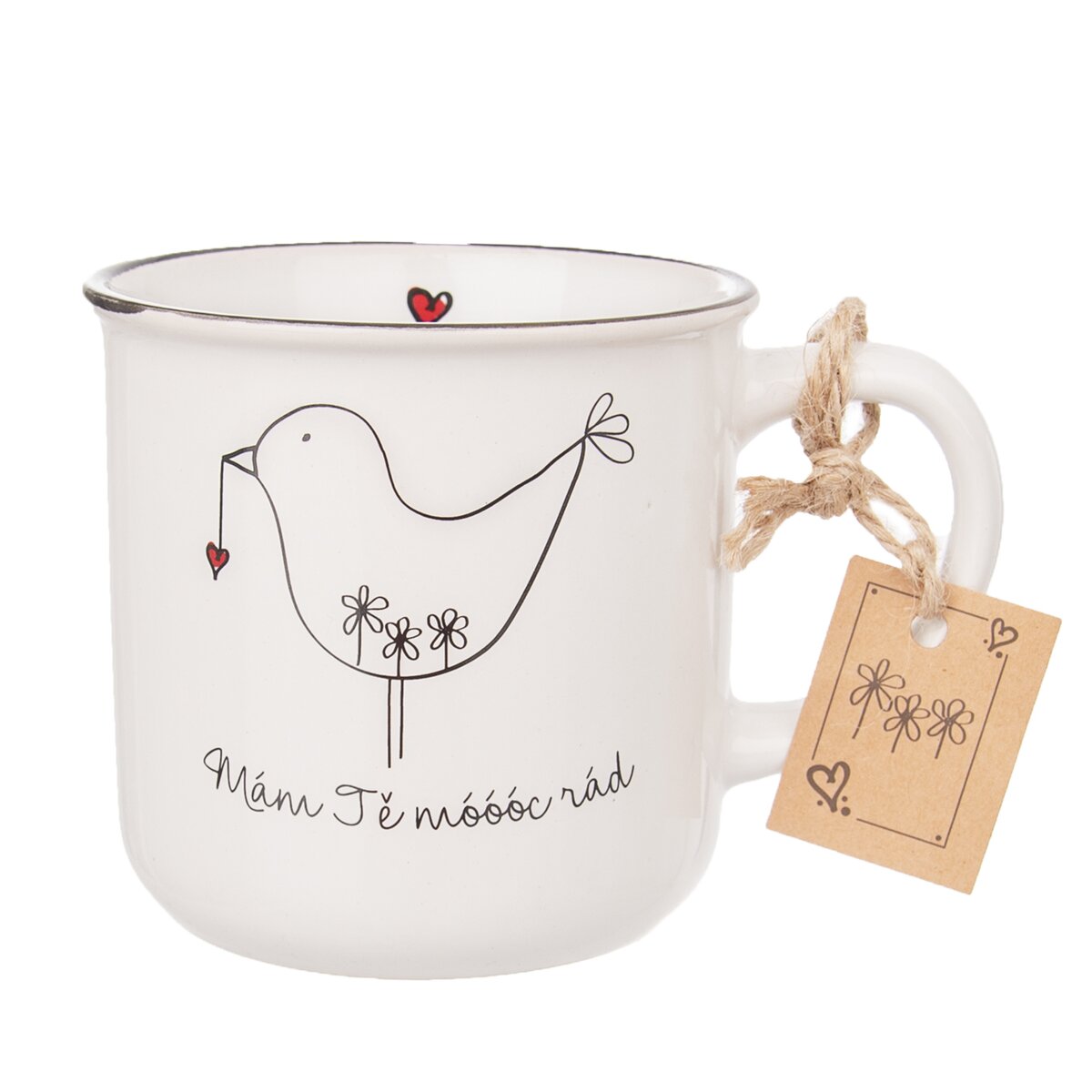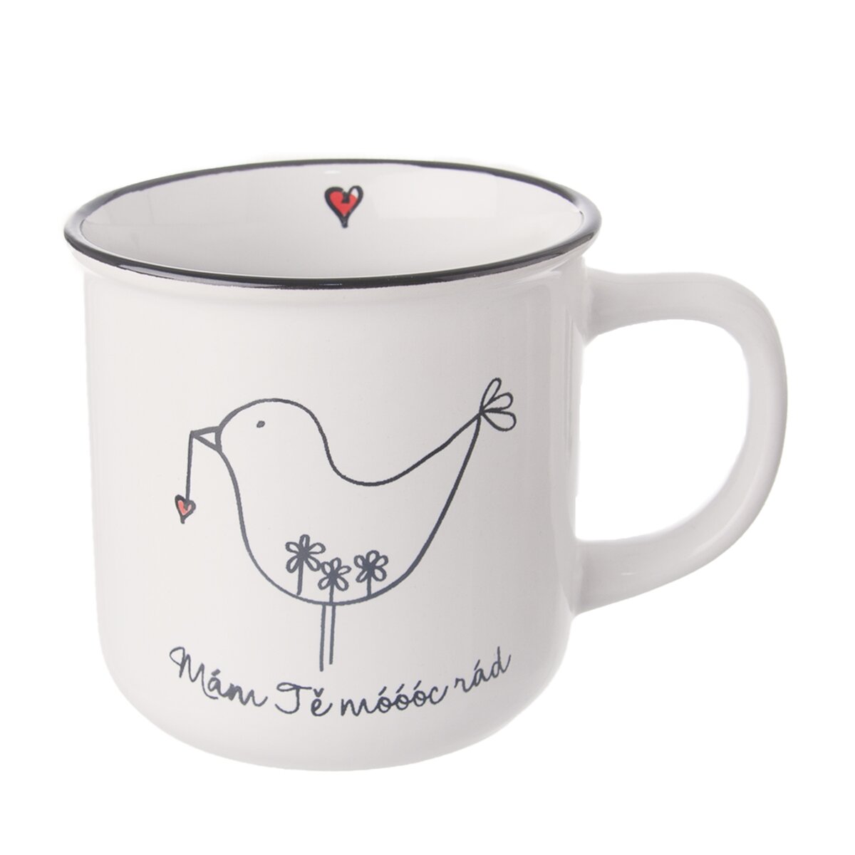 Kód produktu 128843Keramický hrnček s objemom 0,37 l s dekorom vtáčika a nápisom MÁM TĚ RÁD.