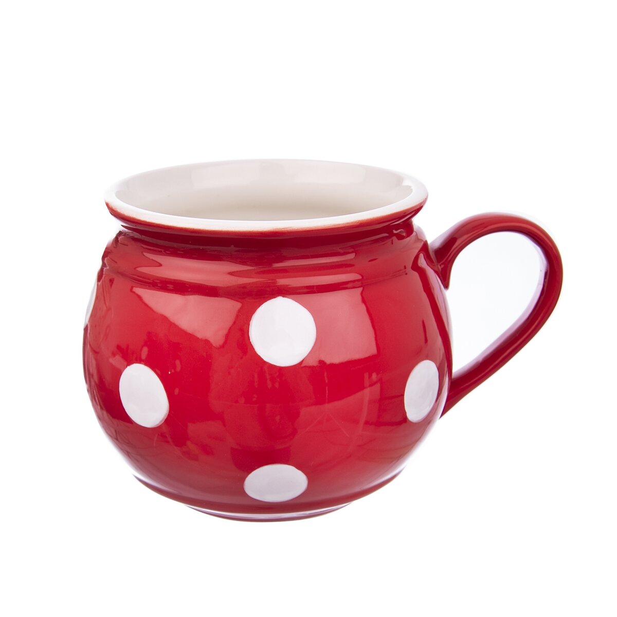 Kód produktu 125652Červený keramický hrnček KRÁJAČ s objemom 0,75 l s bielymi bodkami.
