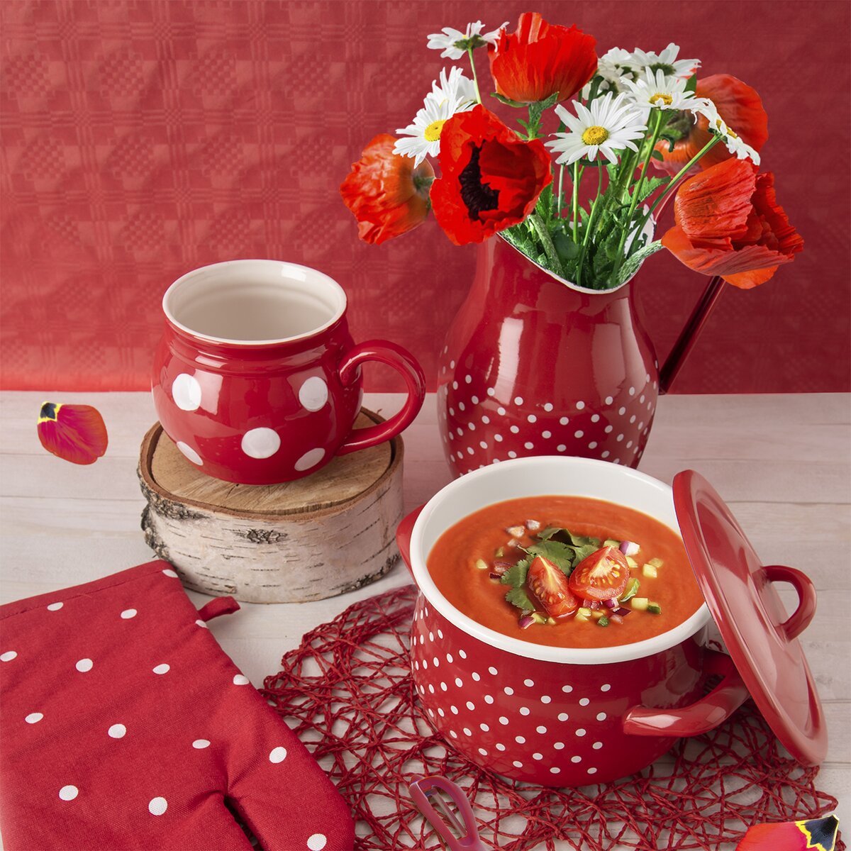 Kód produktu 110277Krásny červený smaltovaný hrniec s pokrievkou s objemom 2,3 l na varenie, dusenie aj pečenie vašich obľúbených jedál, je vhodný na všetky typy sporákov aj do rúry.