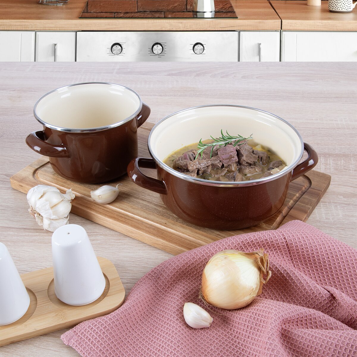 Kód produktu 113361Smaltovaný hrniec BROWN s objemom 1,4 l je vhodný na varenie, dusenie aj pečenie vašich obľúbených jedál, na všetky typy sporákov vrátane indukcie aj do rúry.