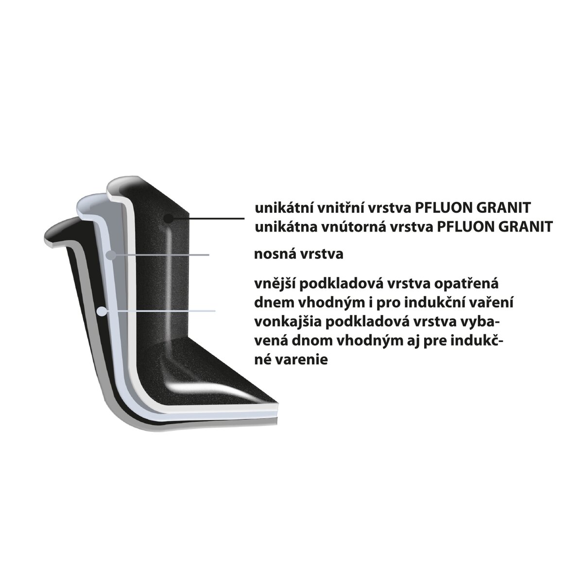 - vyrobené zo zliatiny hliníka potiahnutého veľmi kvalitným antiadhéznym povrchom PFLUON GRANIT