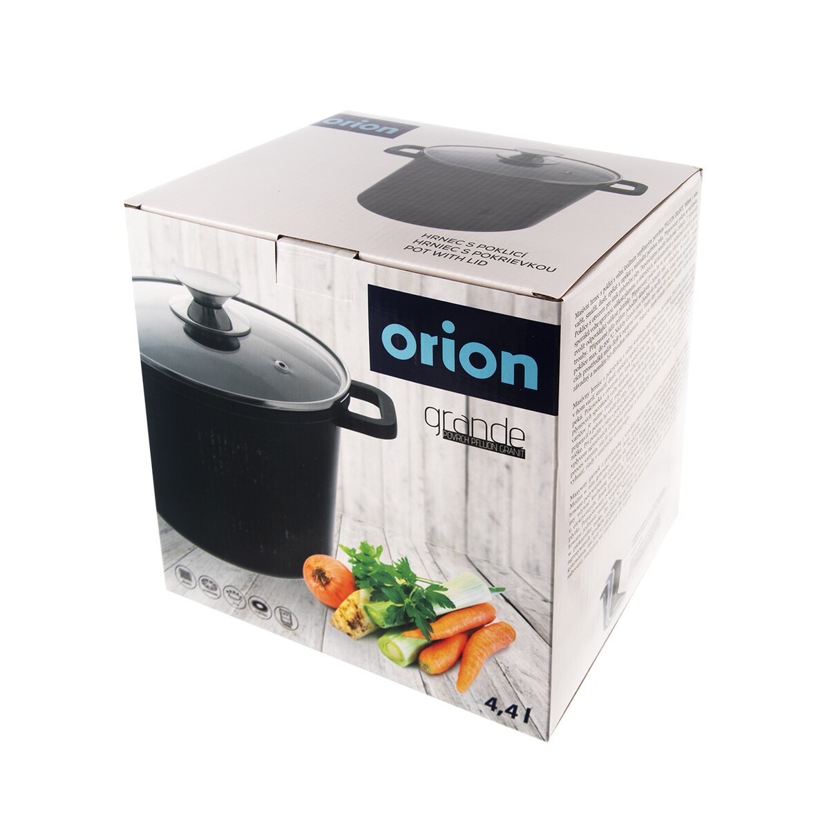Kód produktu 113316Hrniec GRANDE s kvalitným nepriľnavým povrchom, objemom 4,4 l a so sklenenou pokrievkou je vhodný na všetky typy sporákov vrátane indukcie aj do rúry. Možnosť umývania v umývačke.