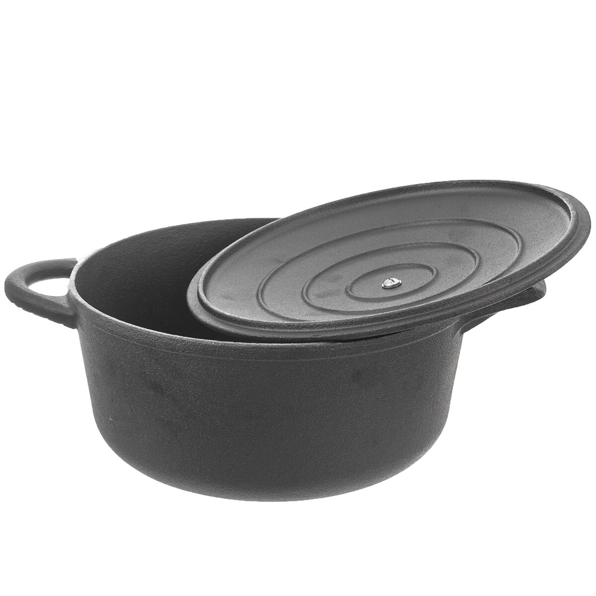 Kód produktu 113302Masívny liatinový hrniec s objemom 4 l, s pokrievkou s nerezovým úchytom a dvoma držadlami, je vhodný na prípravu, varenie a pečenie pokrmov na všetkých typoch sporákov, v rúre aj na priamom ohni.