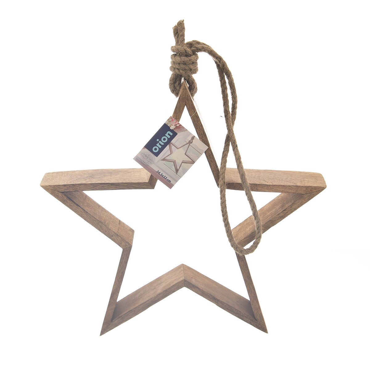 Mangové drevo má typickú, výraznú kresbu a krásnu farbu, hviezdu je možné zavesiť za jutový povrázok na stenu, okno či dvere, s povrazom má výšku 65 cm. Vďaka hĺbke 5,3 cm môže ale aj stáť na parapete alebo polici.