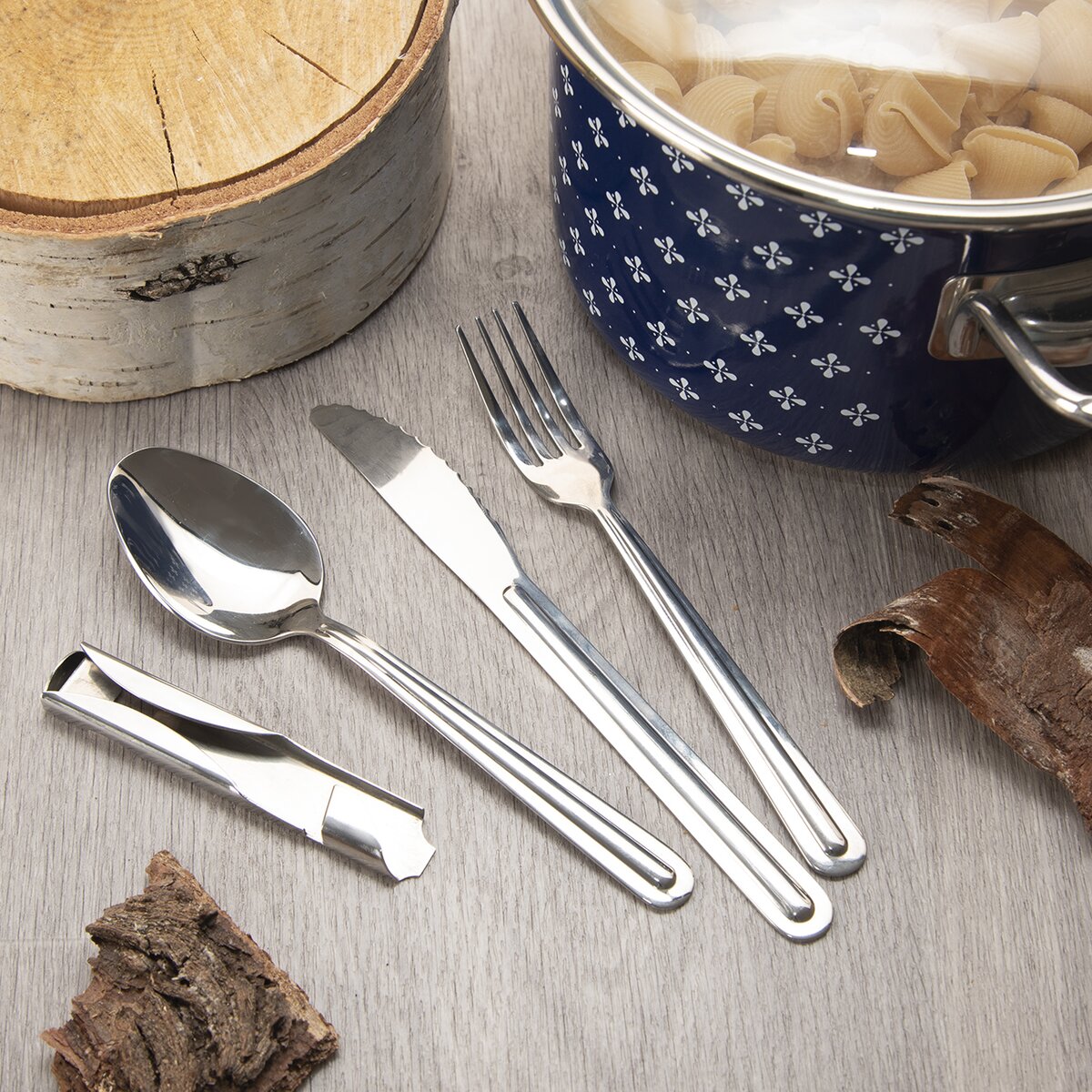 Kód produktu 154202Sada nerezových príborov KEMP, uložených v otvárači na konzervy, je ideálna pri kempovaní, táborení, cestovaní alebo na chalupe a chate.
