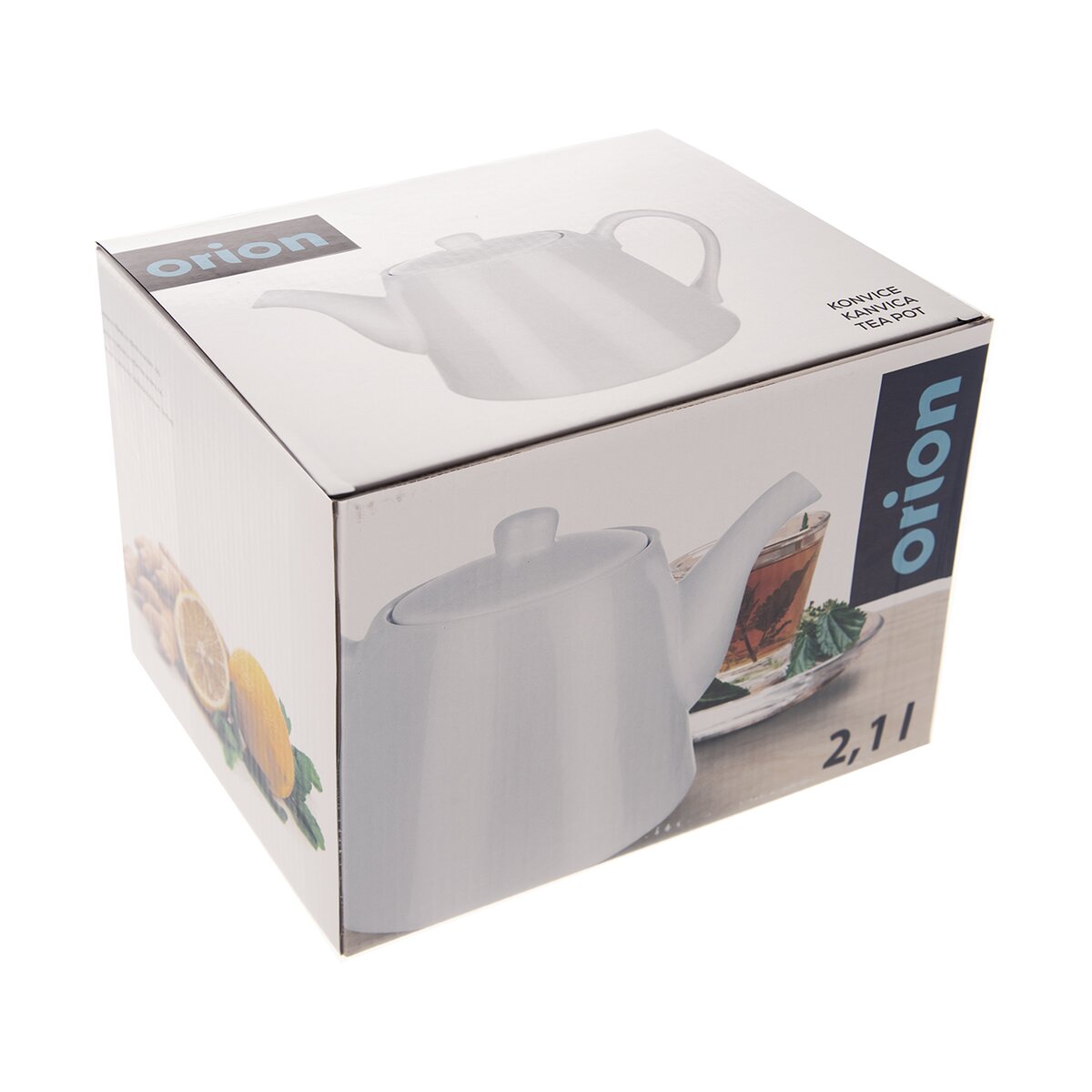 Kód produktu 156005Väčšia elegantná biela porcelánová kanvica MONA s objemom 2,1 l pre prípravu a servírovanie čaju a kávy.