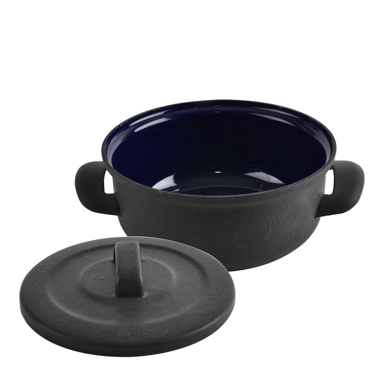 Oceľový základ je pokrytý smaltom, čo je tavenina podobná sklu a vytvorí tak odolný, úplne zdravotne nezávadný povrch. Z vonkajšej strany je matný plastický povrch, s viditeľnými stopami po otere. Po pár použitiach sa zatiahne a získa klasickú, tmavo čiernu farbu. Vo vnútri je aplikovaný špeciálny modrý smalt, ktorý má výborné kyselinovzdorné vlastnosti a zostáva pri bežnom používaní roky prakticky nedotknutý.