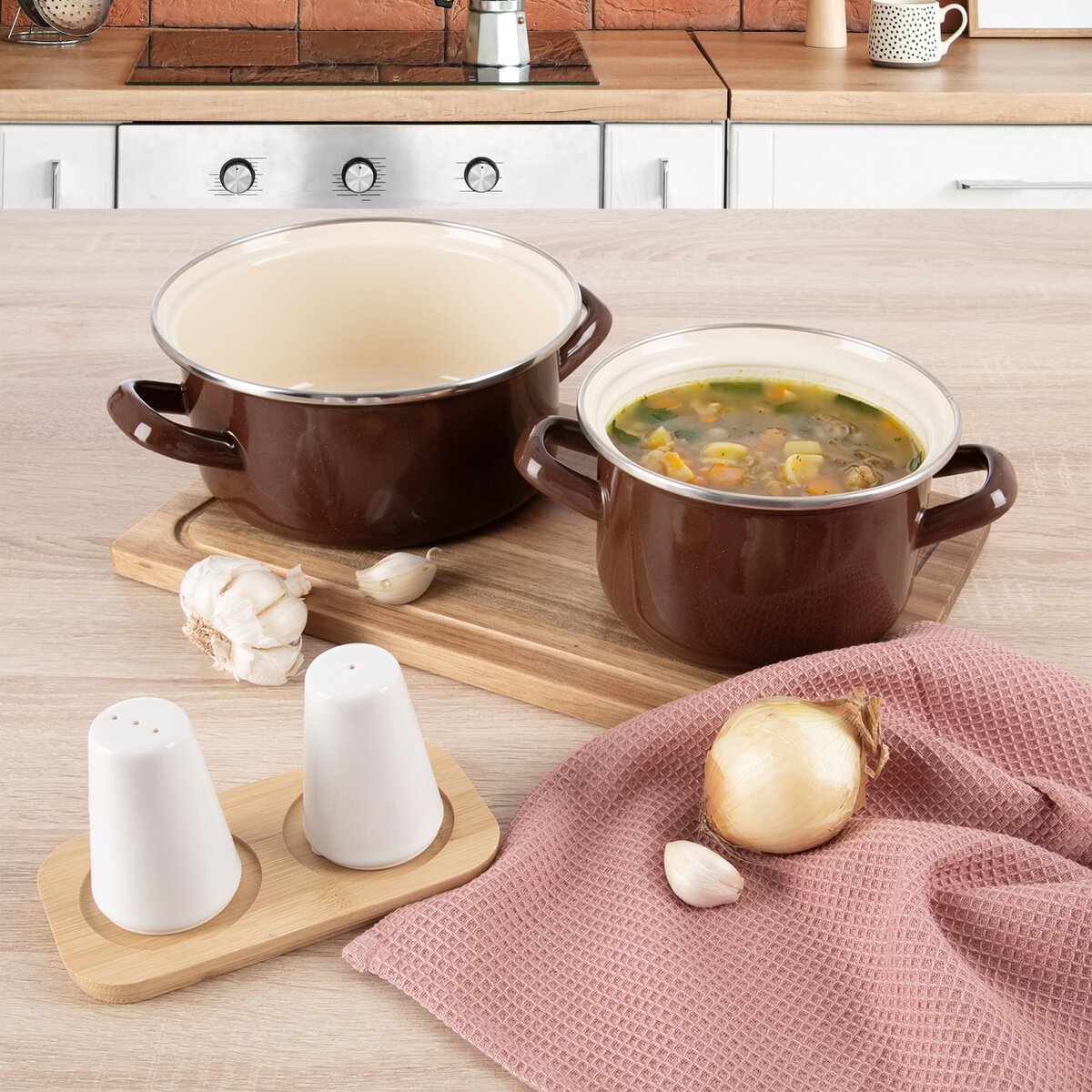 Viac informáciíKlasický hnedý smaltovaný riad používali už naše babičky. Riad Brown je predovšetkým praktický, oceľový základ pokrýva smalt, teda tavenina podobná sklu a vytvára tak odolný, úplne zdravotne nezávadný povrch. Z vonkajšieho aj vnútorného povrchu sú viditeľné jemné bodky, evokujú rustikálny štýl, ideálny na chaty, chalupy alebo do vidieckych domácností.