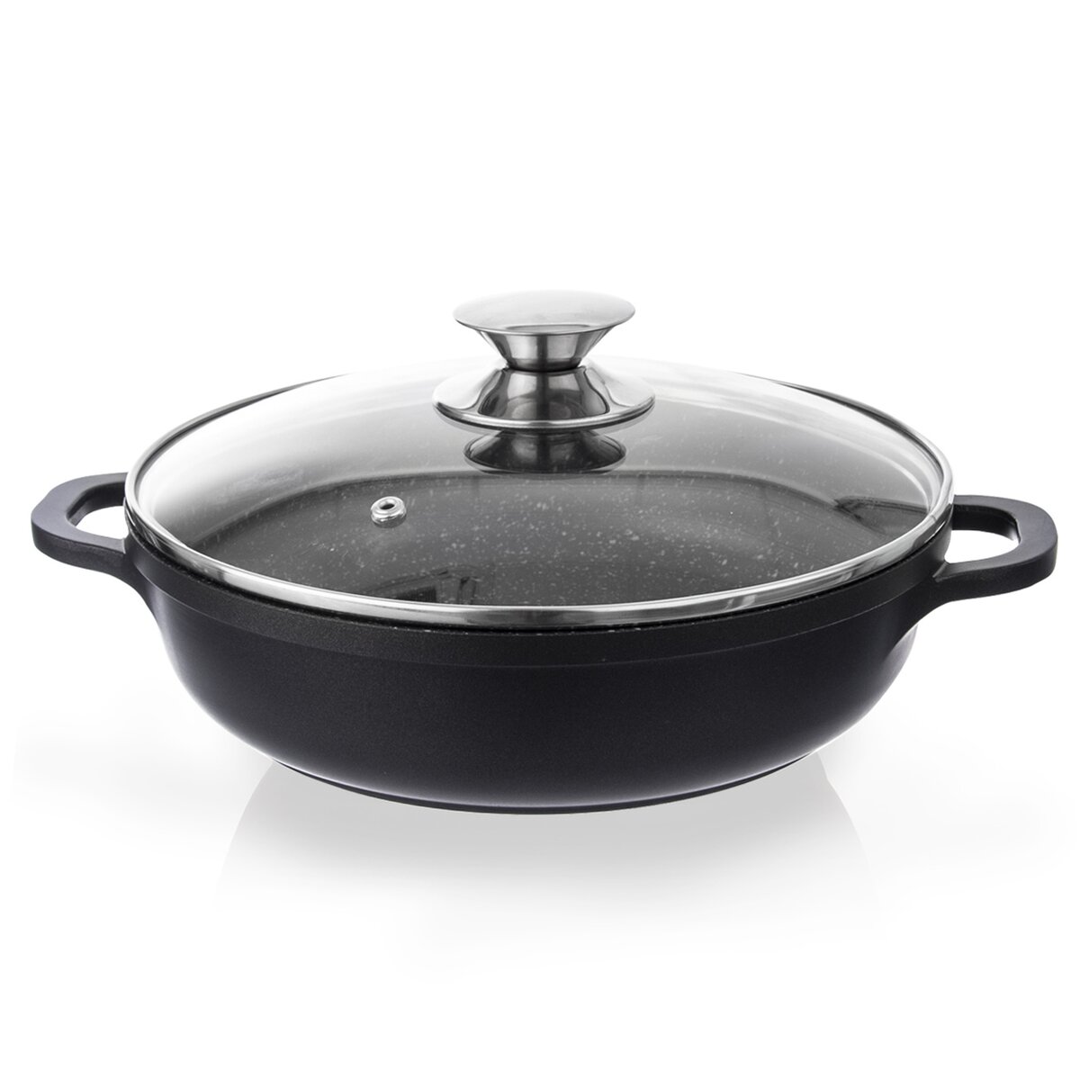 Kastról je vybavený sklenenou pokrievkou s nerezovým lemom a otvorom pre únik prebytočnej pary, budete tak mať prehľad nad stavom pripravovaného pokrmu.