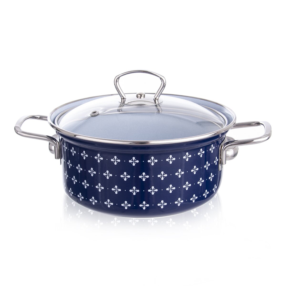 Kód produktu 113115Smaltovaný kastról SOFIA s objemom 2,8 l so sklenenou pokrievkou k vareniu, duseniu aj pečeniu vašich obľúbených jedál, je vhodný na všetky typy sporákov aj do rúry.
