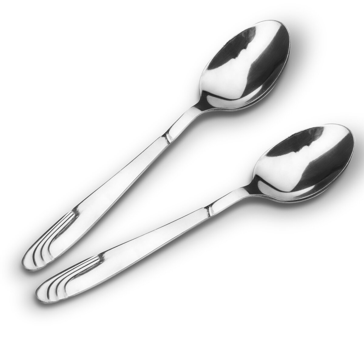 Lesklé nerezové lyžičky v jednoduchom dizajne, s elegantným pretlačovaným dekorom v tvare vlniek na rukoväti, ktoré sa príjemne držia.