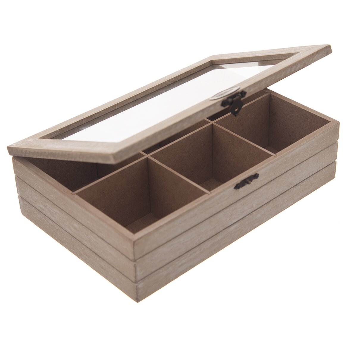 Kód produktu 127160Drevená kazeta na čajové vrecúška je rozdelená do 6 sekcií, s preskleným vekom a jednoduchým uzatváraním.