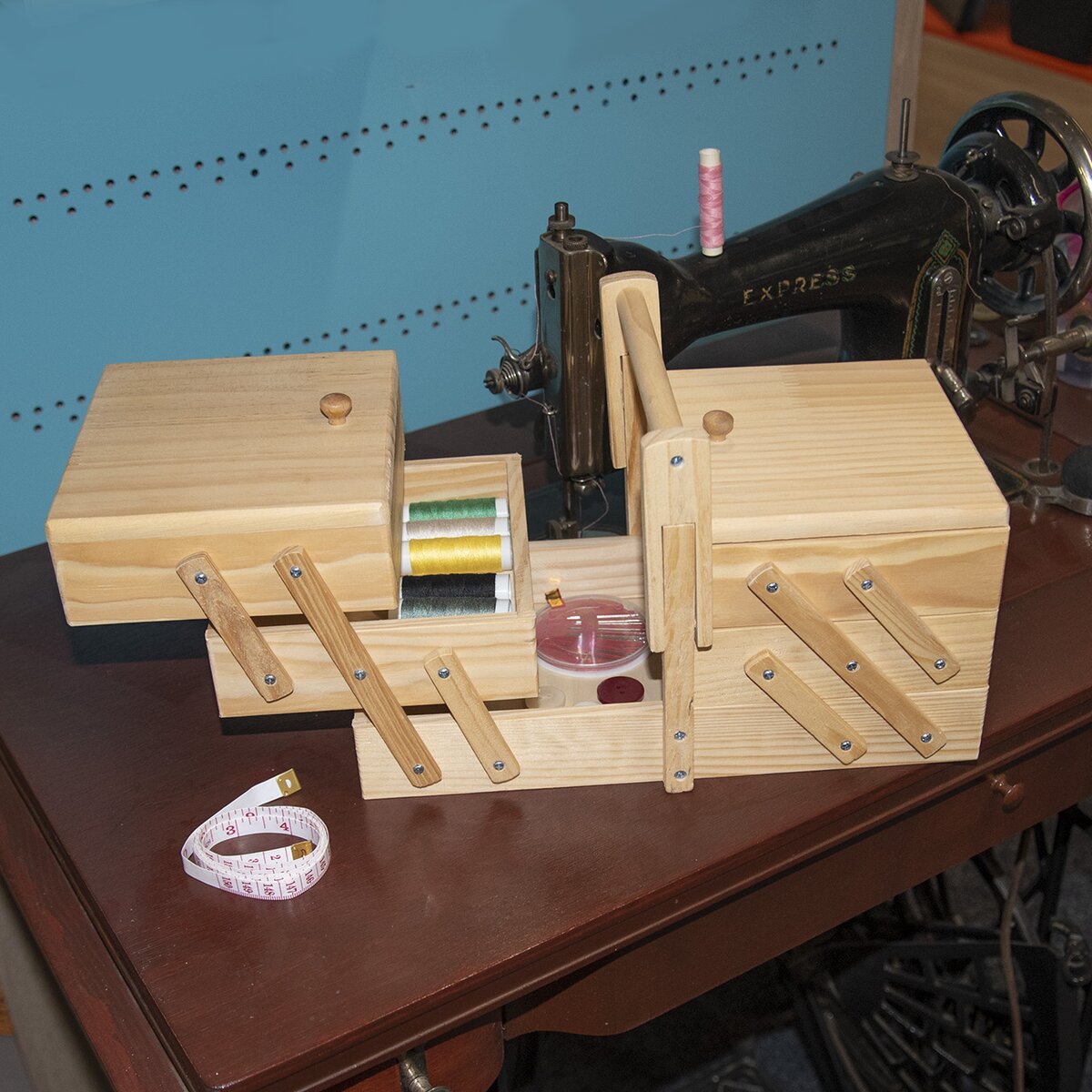 Vo vnútri nájdete 12 farieb nití, sadu ihiel, malé nožnice, meter, náprstok, zatváracie špendlíky a patenty. Vďaka veľkosti 14,5x8x9,5 cm nezaberie v batožine veľa miesta.
