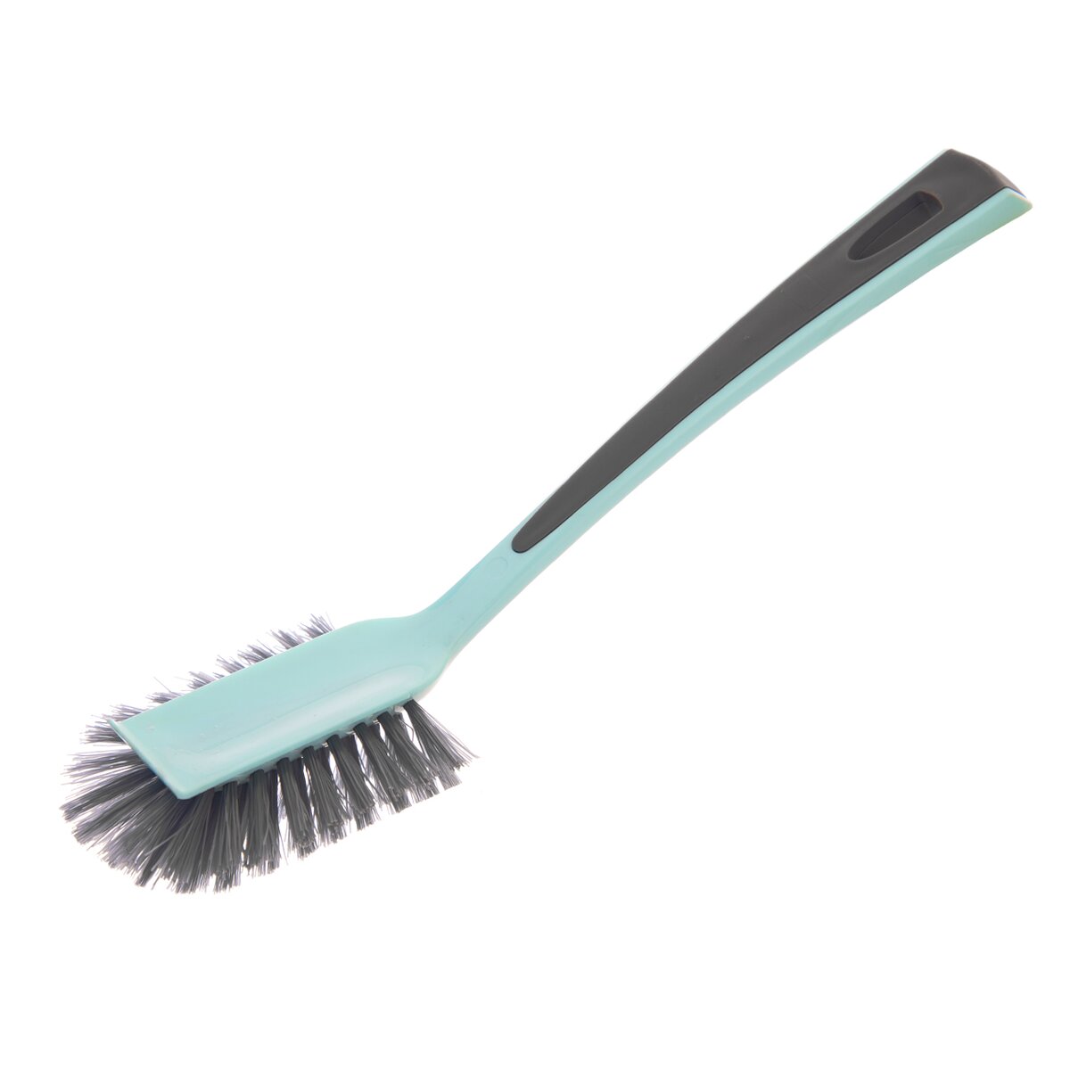 Nechcete si pri umývaní riadu namáčať ruky v špinavej vode? Vymeňte handry či hubky na riad za túto podlhovastú plastovú kefu s rukoväťou. Je zakončená rovnou plochou, ktorú možno použiť na pripečené časti plechov a kastrólov, ktoré je po odmočení potrebné stiahnuť.
