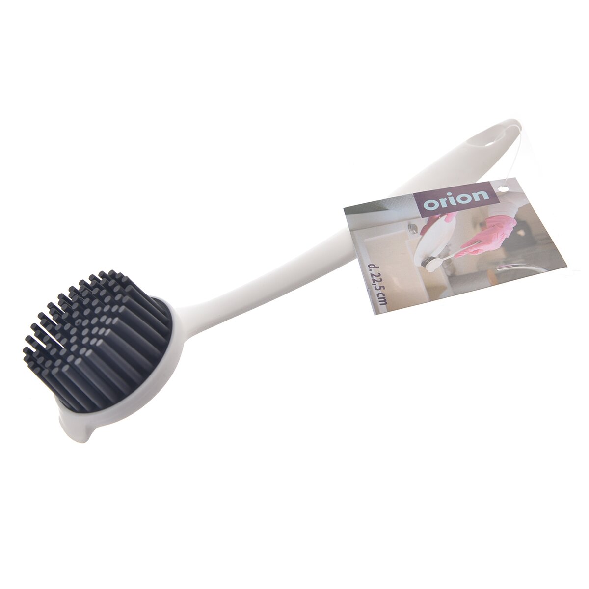 Kód produktu 710495Biela plastová kefa s dlhou rukoväťou, s celkovou dĺžkou 22,5 cm, uľahčí umývanie riadu, čistenie kuchyne, kúpeľne a pod. Je opatrená pružnými plastovými štetinami.