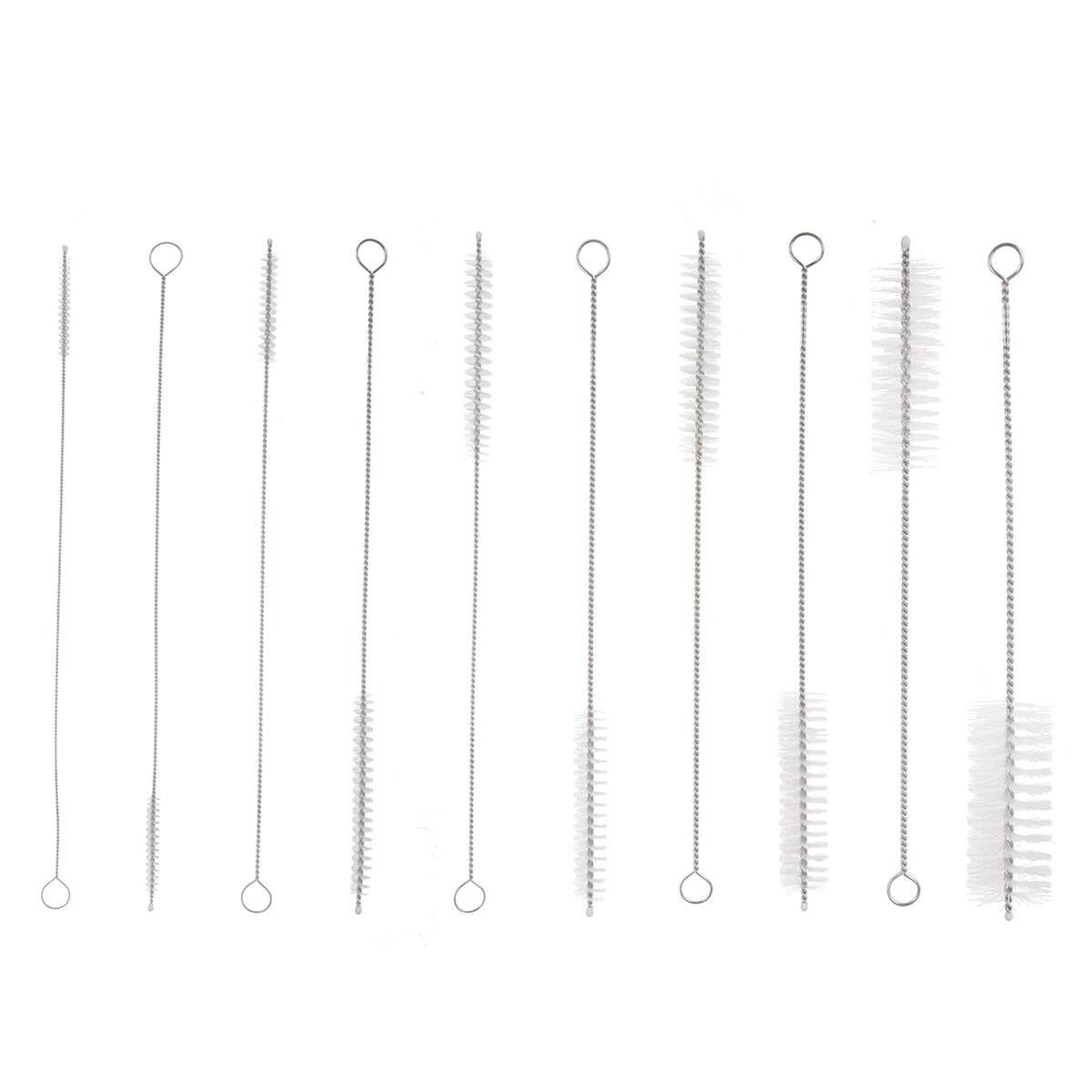 Kód produktu 151413Sada 10 kusov rôzne širokých kefiek z nylonu na nerezovej rukoväti sa hodí na čistenie slamiek, úzkych hrdiel rôznych fliaš, termosiek a kanvíc.