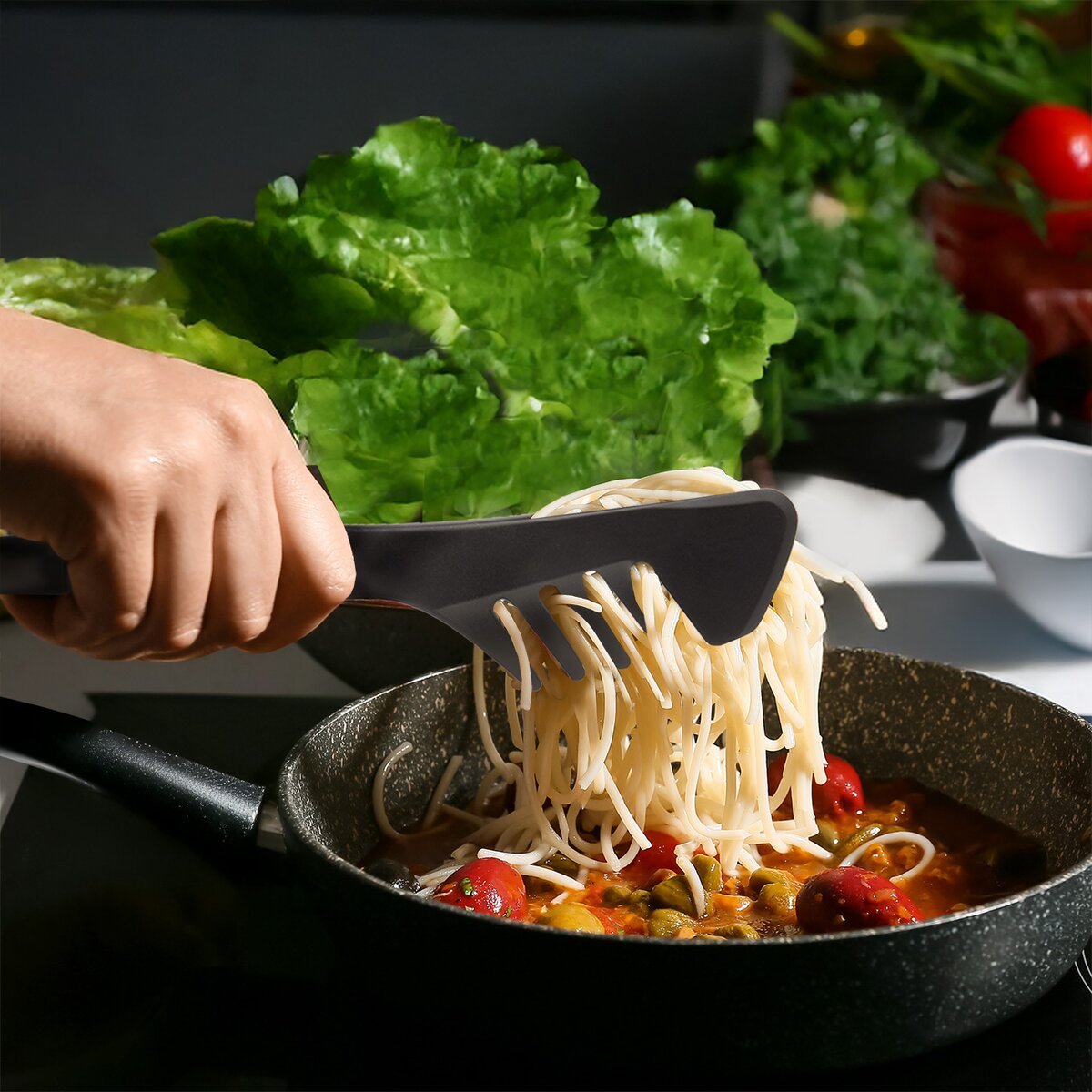 Ich praktickosť oceníte aj pri naberaní špagiet alebo zeleninových šalátov. Je možné ich používať až do teploty +200 °C, mimo dosahu priameho ohňa.